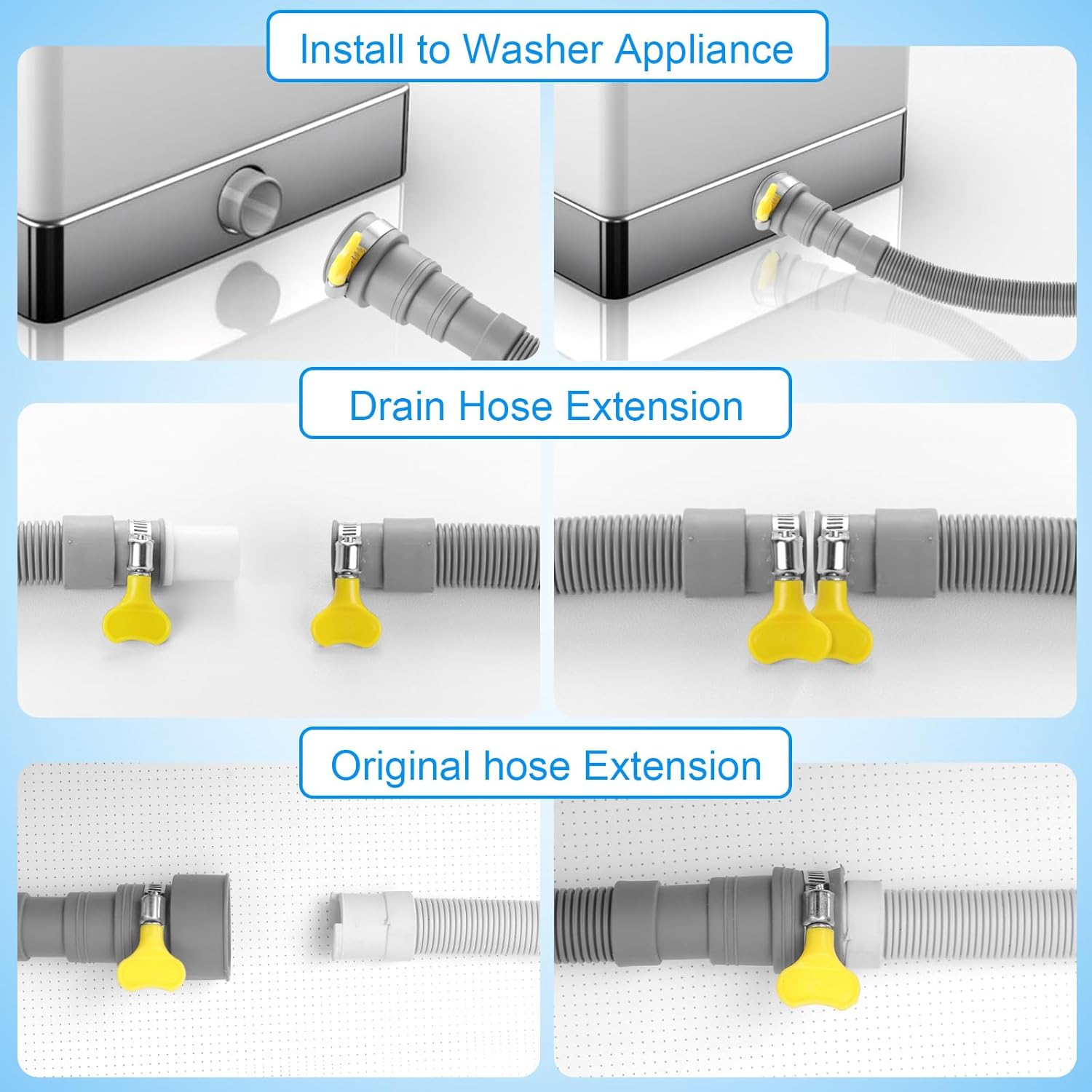 Easy to Install: Only a few minutes to hook up. 3-Step, Just cut inlet hose connection to fit washing machine outlet assembly, tightly secure with included clamps and hook end in the drain.