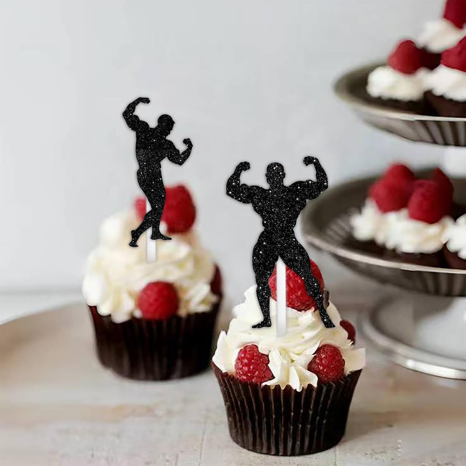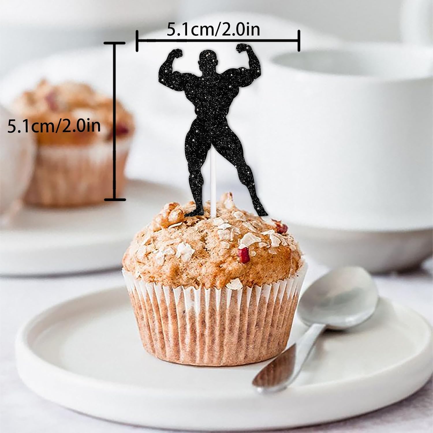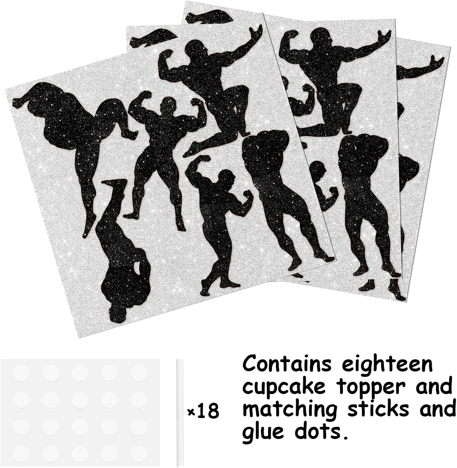 18pcs Black Glitter Silhouette Dessert Cupcake Topper Pick for Gym Fitness Weight Lifting Sports Muscle Men Theme Decor Supplies Men Boys Happy Birthday Anniversary Party Decorations