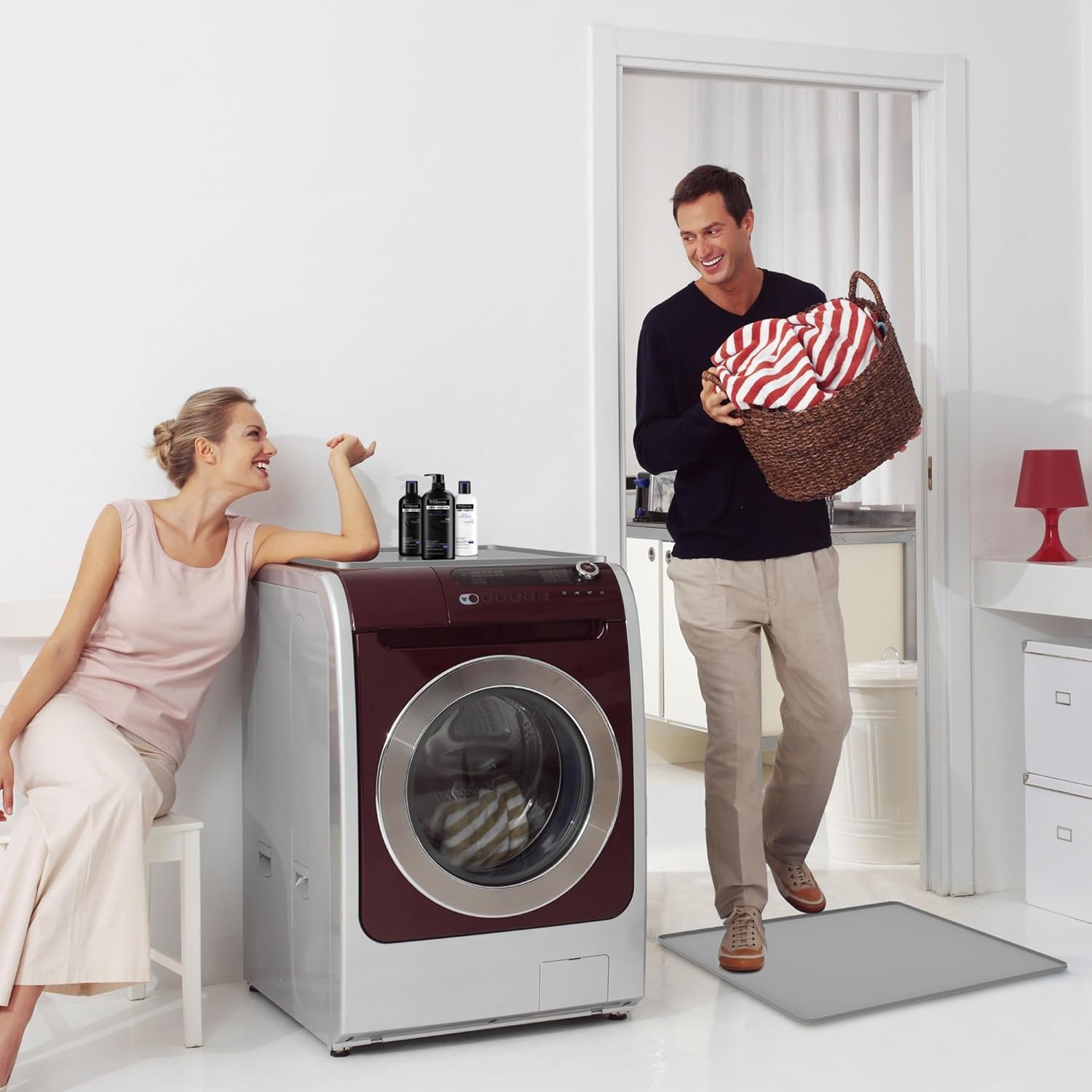 Putting detergent or items on top of the washer or dryer can sometimes scratch up the top surfaces and move around. Use our Silicone Washer and Dryer Covers to alleviate that. Most washers and dryers are about 27” x 27” in size. To fit most machines better, we have created a custom-designed silicone cover that measures 26.8” X 26.8” , larger than others 25.6”x 23.6” / 23.6″x19.7″ and do a good job covering nearly all of the top surface. Note: Be sure to measure the size of your washer before buying to make sure it will perfectly fit. Keep your surroundings clean and dry with this versatile and practical mat.
