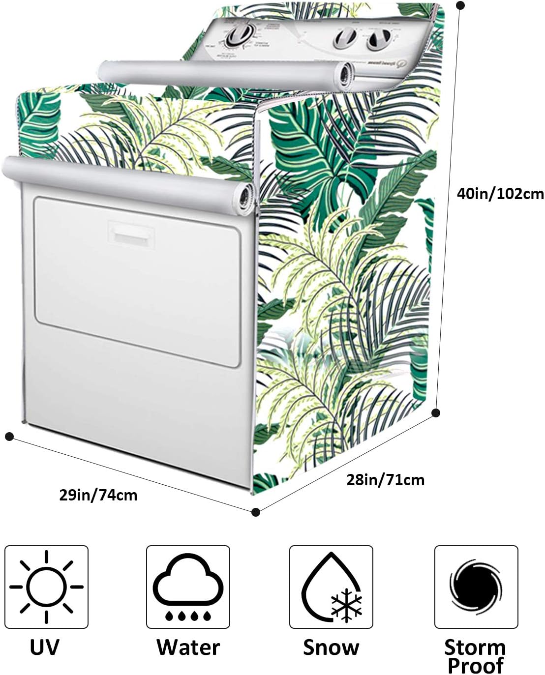 Size – L29*W27*H40in(L74*W70*H101cm).Based on large amount of market investigation, our cover fits most top load or front load washers/dryers.Suitable for toilet, kitchen, bathroom, balcony light, patio, eaves and ect.(*Please measure your machine carefully before placing your order