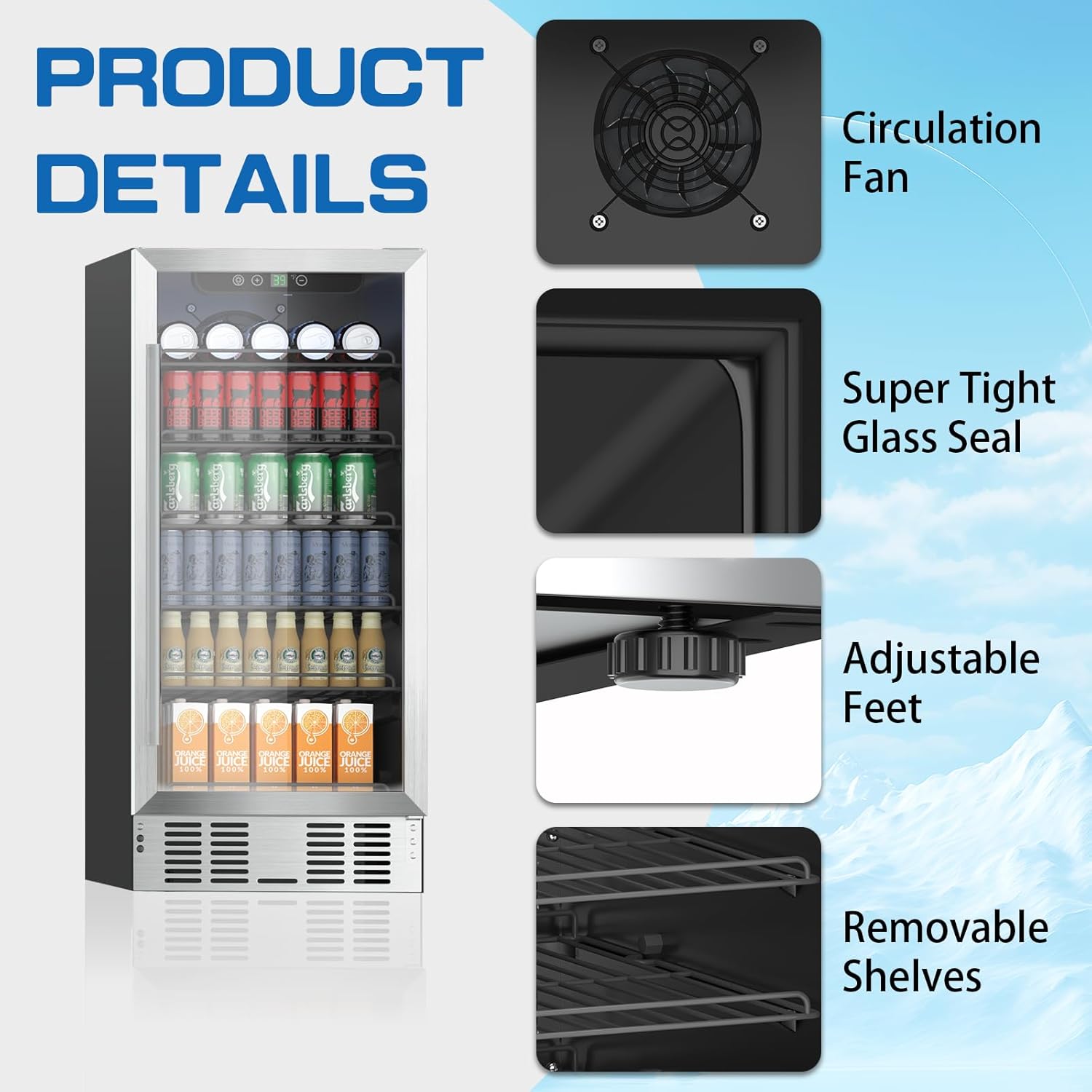 This beverage cooler is also designed with an additional temperature sensor for auto defrost mode.Note that this cooler is only for chilling beverages, so do not store fresh foods, such as meats, vegetables, fruits, etc.