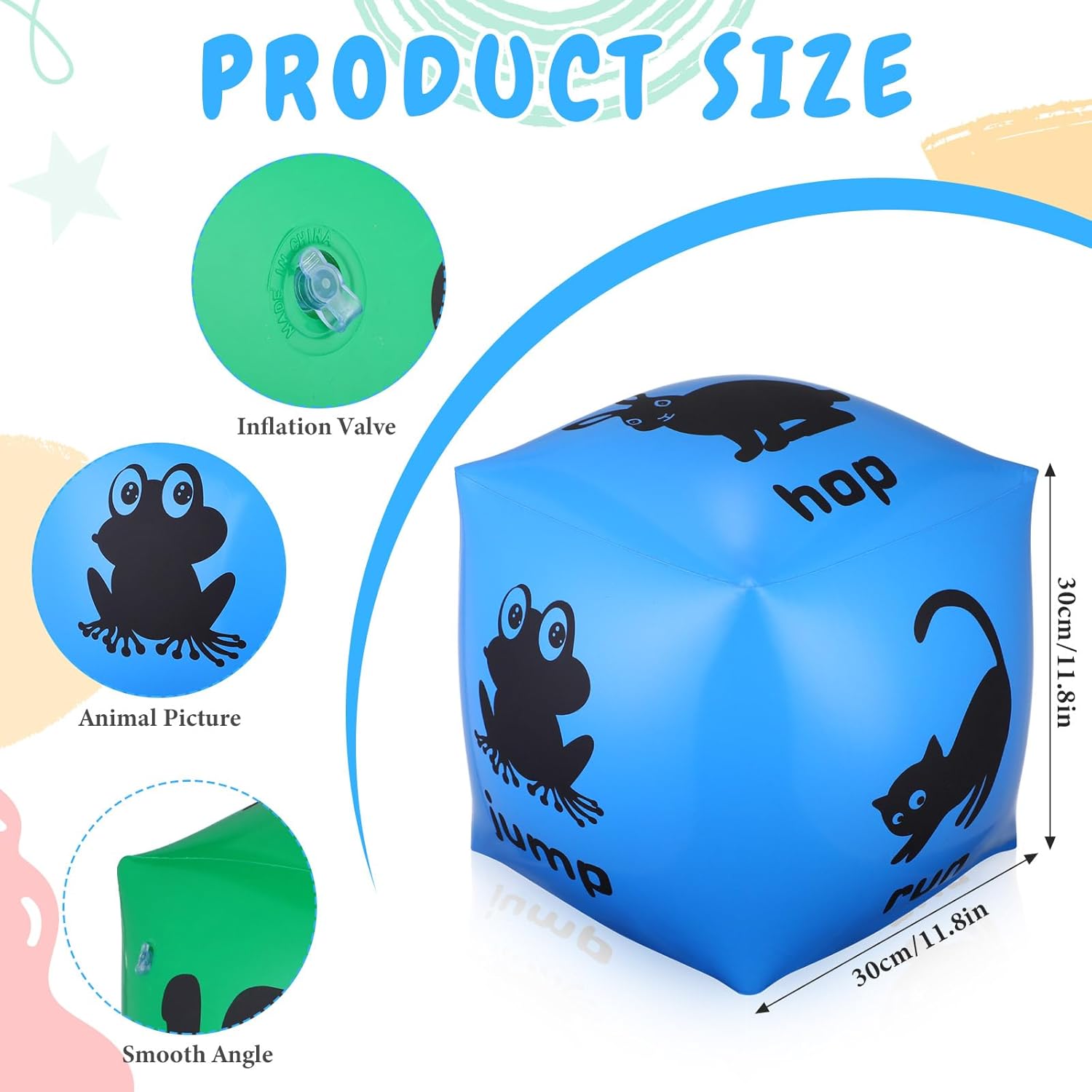Jumbo size and Convenient: With a size of about 11.81 Inches/ 30 cm when inflated, our fitness dice for kids are big enough for people to see; Moreover, they can be easily deflated through its air valve for compact storage; This feature ensures the dice are easy to take and easy to store when not in use