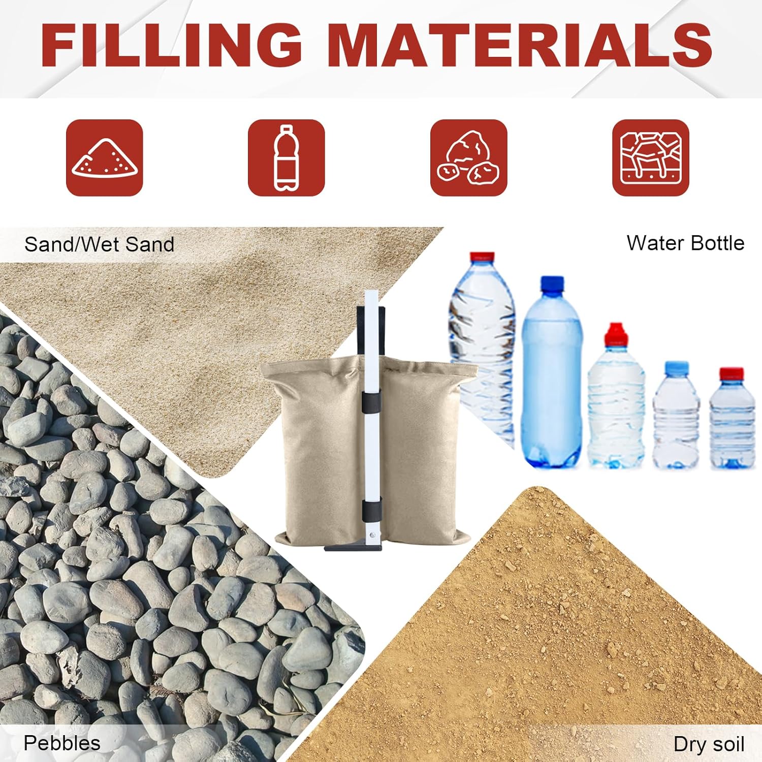 Flexible & Heavy-Duty Design: Each weight bag can hold sand, rocks, or dirt, offering reliable anchoring on any surface—grass, sand, or uneven terrain—for maximum stability.