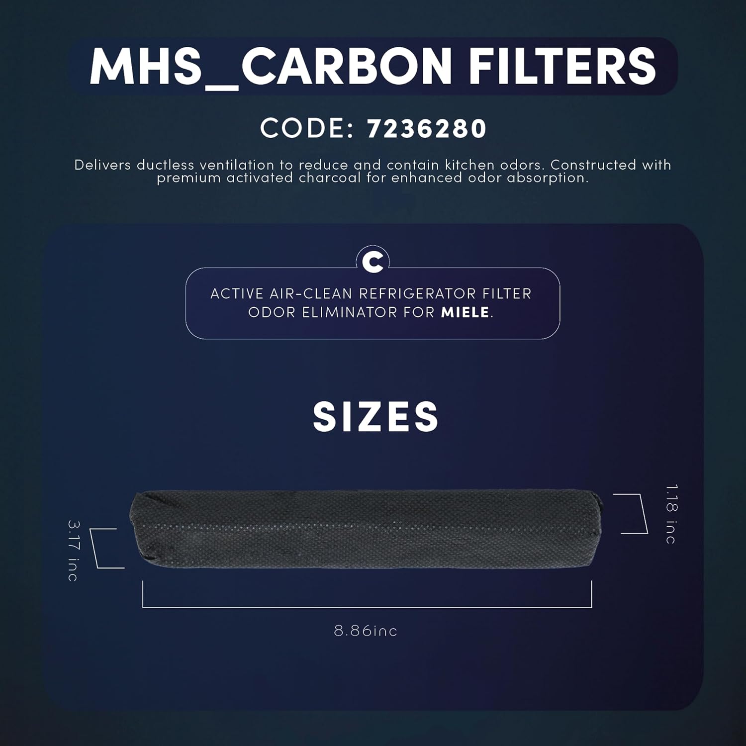 Active Air-Clean Refrigerator Filter Odor Eliminator for Miele, Universal 7236280, Small, Pack of 2, MHS FILTERS