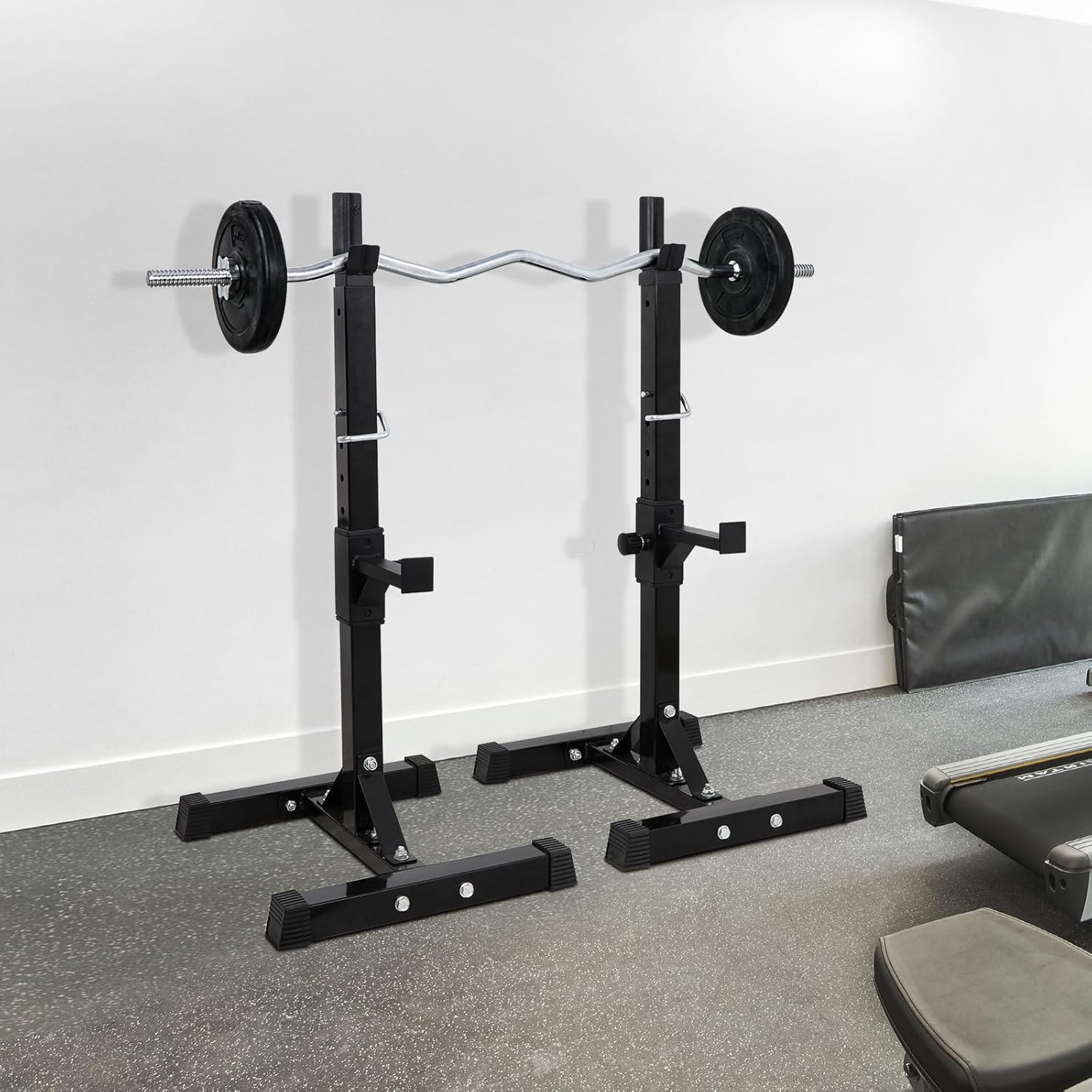 Sturdy and Durable: The squat rack is made of heavy-duty steel to ensure its strength and durability. It has a maximum weight capacity of 550 lbs and the H-base design provides reliable and stable support for your bench press exercises. This makes it a great choice for high-intensity workouts at home or in the gym