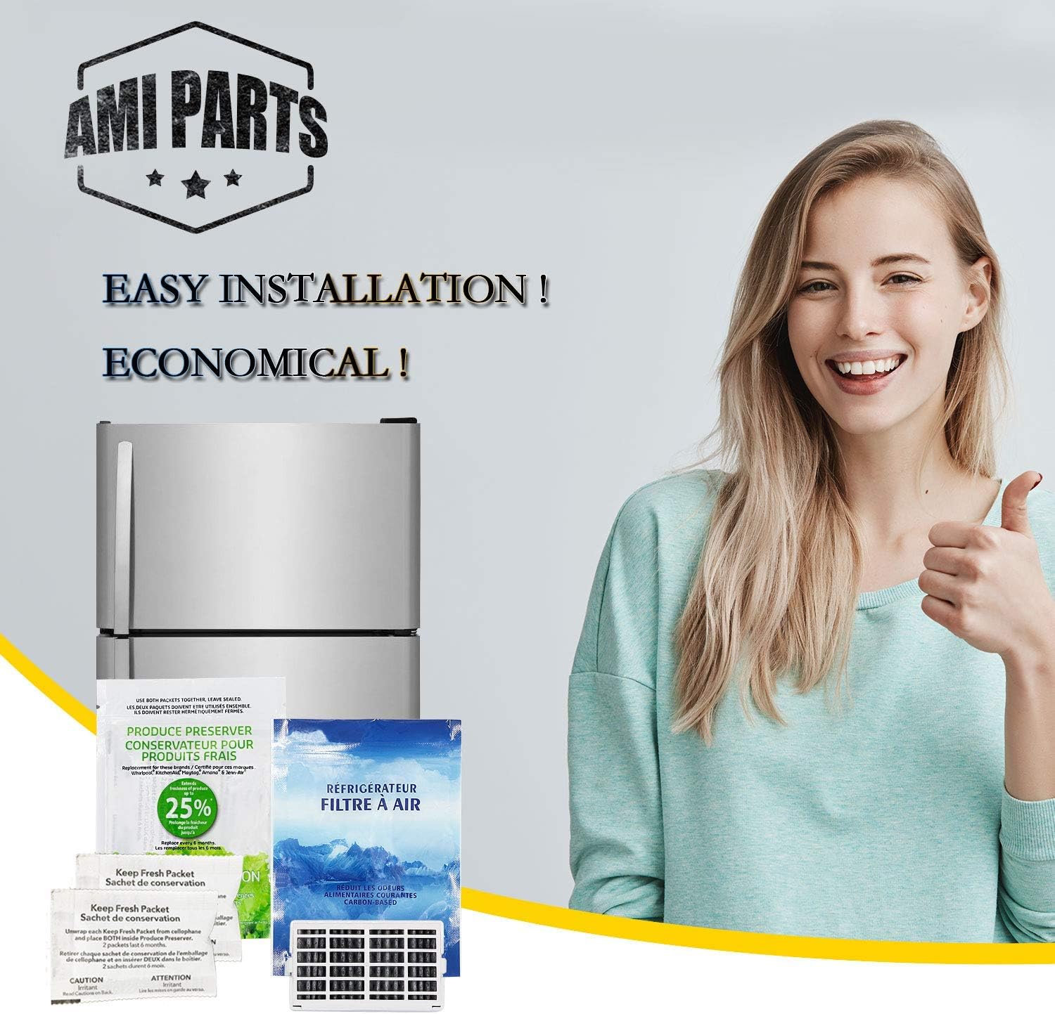 Be the first to review “AMI PARTS W10311524 Air Filter &W10346771A Produce Preserver Replacement Compatible with Refrigerator(pack of 3 each)”