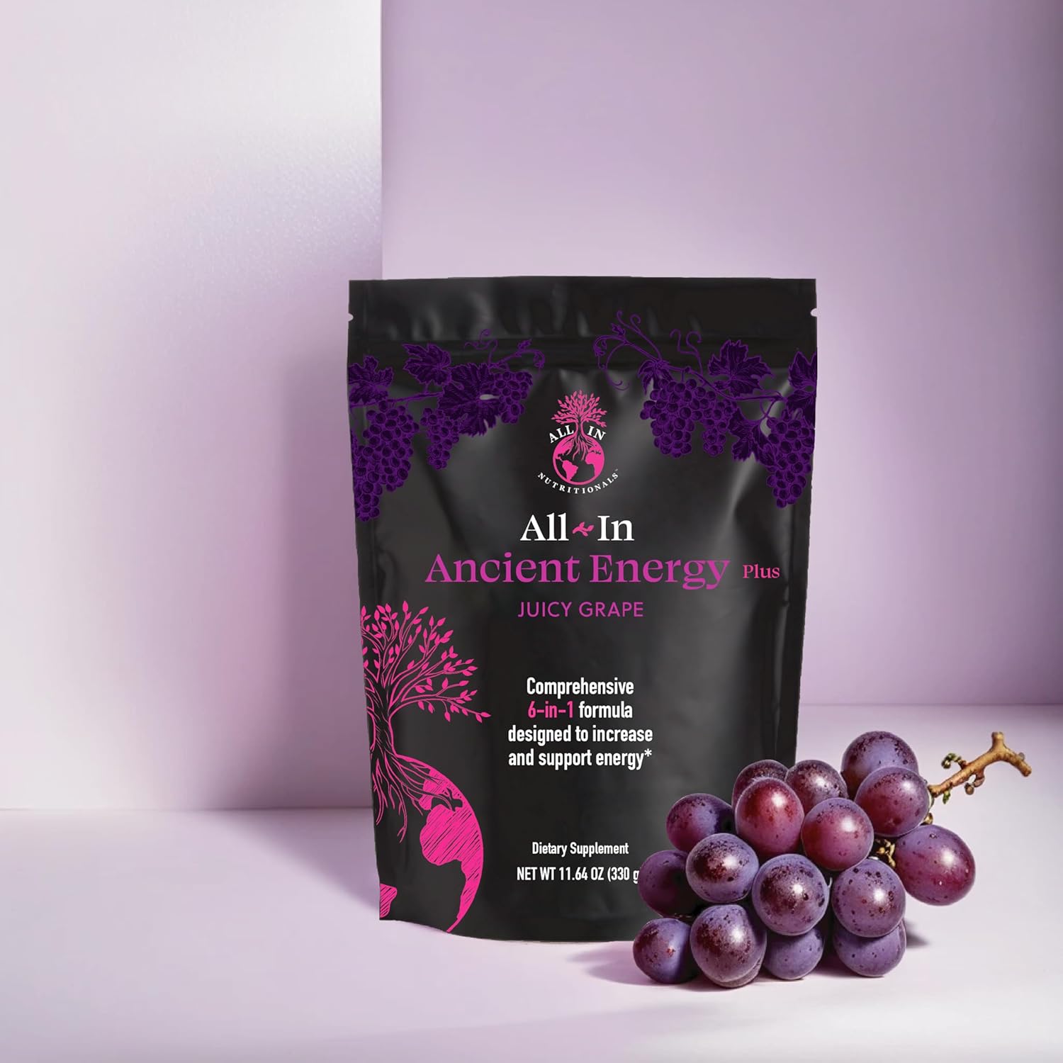 Ancient Energy Plus Powdered Supplement, Juicy Grape – 30 Servings, 1 Scoop, Coconut Sugar, Monk Fruit, Reb M, Sustained Energy, Mental Clarity, Focus, No Jitters, No Crash