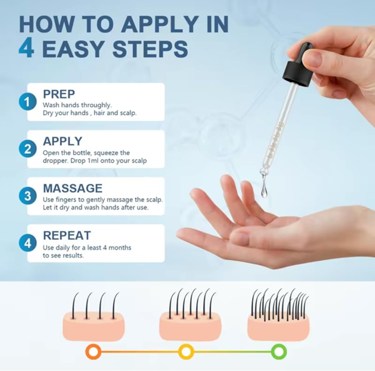 Revitalize, Strengthen, Protect, and Stimulate Hair Follicles.Activate sleeping hair follicles, repair fragile scalp.