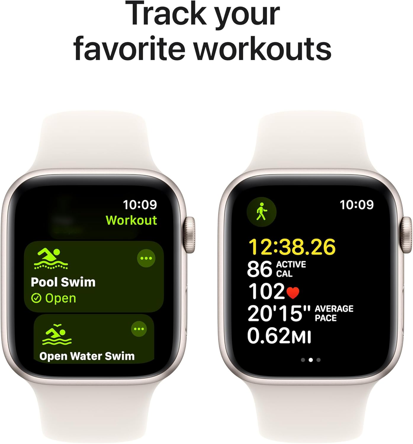 Apple Watch SE (2nd Gen) [GPS 44mm] Smartwatch with Starlight Aluminum Case with Starlight Sport Band M/L. Fitness and Sleep Trackers, Crash Detection, Heart Rate Monitor, Retina Display