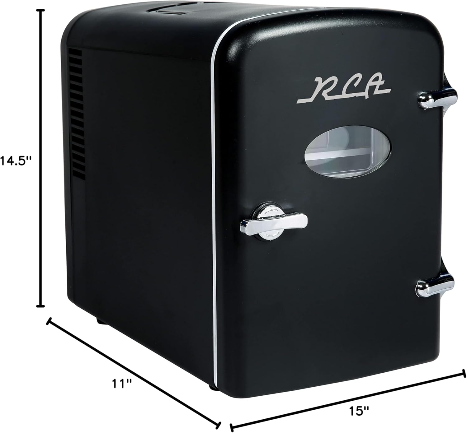 RCA Mini Retro 6 Can Beverage Refrigerator-Black, RMIS129-BLACK.