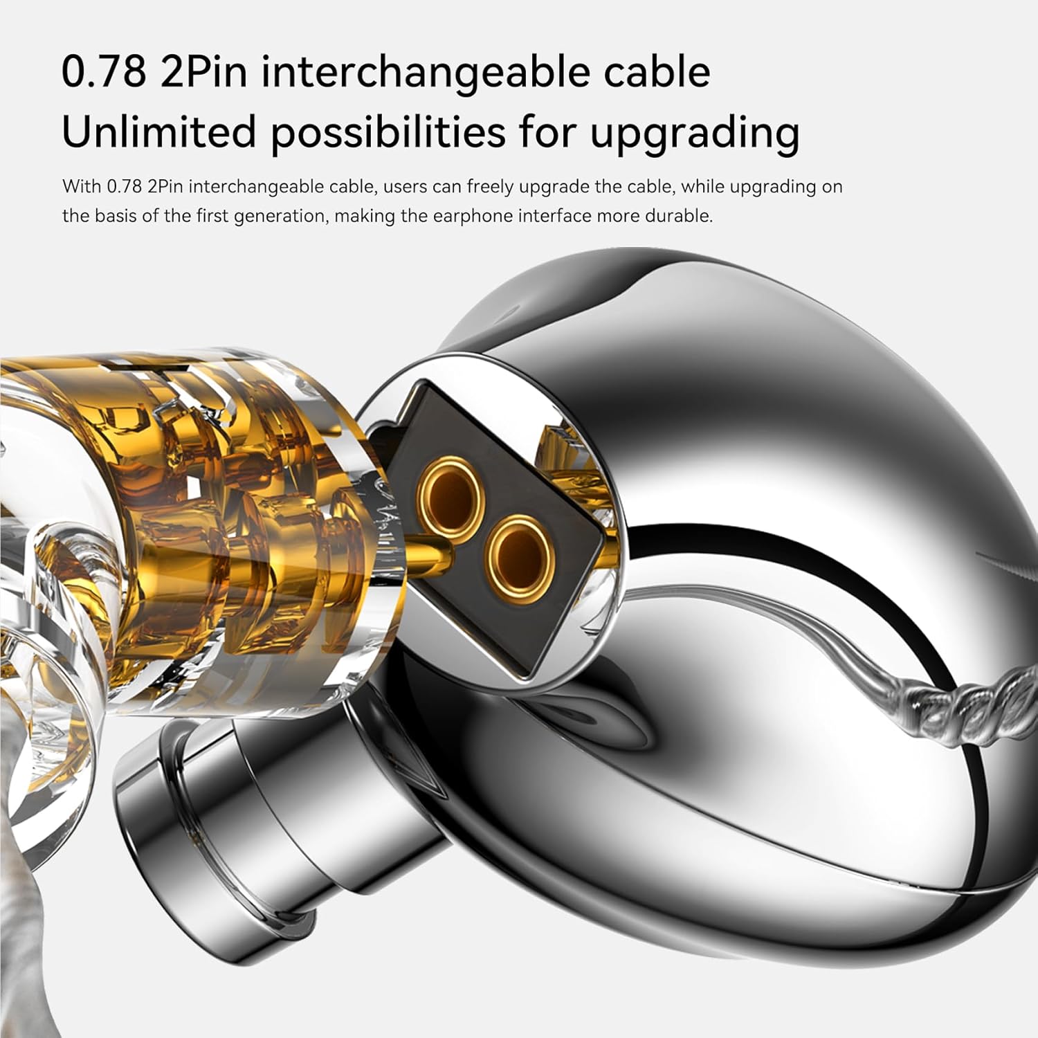 【High Purity OFC Silver-plated Detachable Cable】: The iem cable is made of tensile and anti-interference high-transparency silver-plated wire for faster transmission rate and more transparent sound. 0.78mm dual pins to eliminate short-circuit problems, private mold to create a wrapped sheath, better protection of dual pins, not easily deformed, universal pins allow you to upgrade at will want to change. The wired earphones detachable design , users can freely upgrade the earphone cable, while upgrading on the basis of the first generation, making the earbuds wired interface more durable.