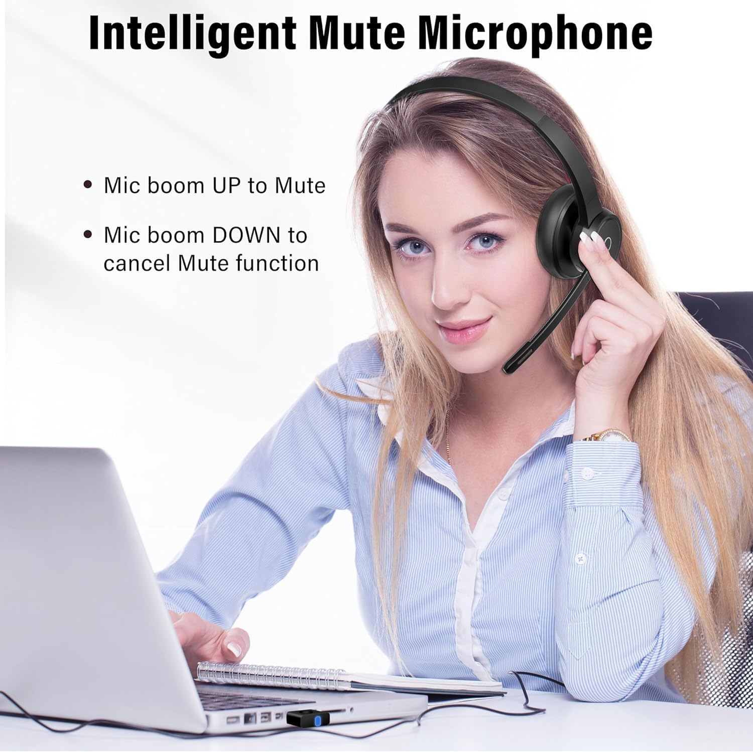 Bluetooth Headset with Noise Cancelling Microphone, Wireless Headphones with Mic Mute Charging Base and USB Dongle for Work from Home Office PC Mac Laptop Call Center Zoom Teams