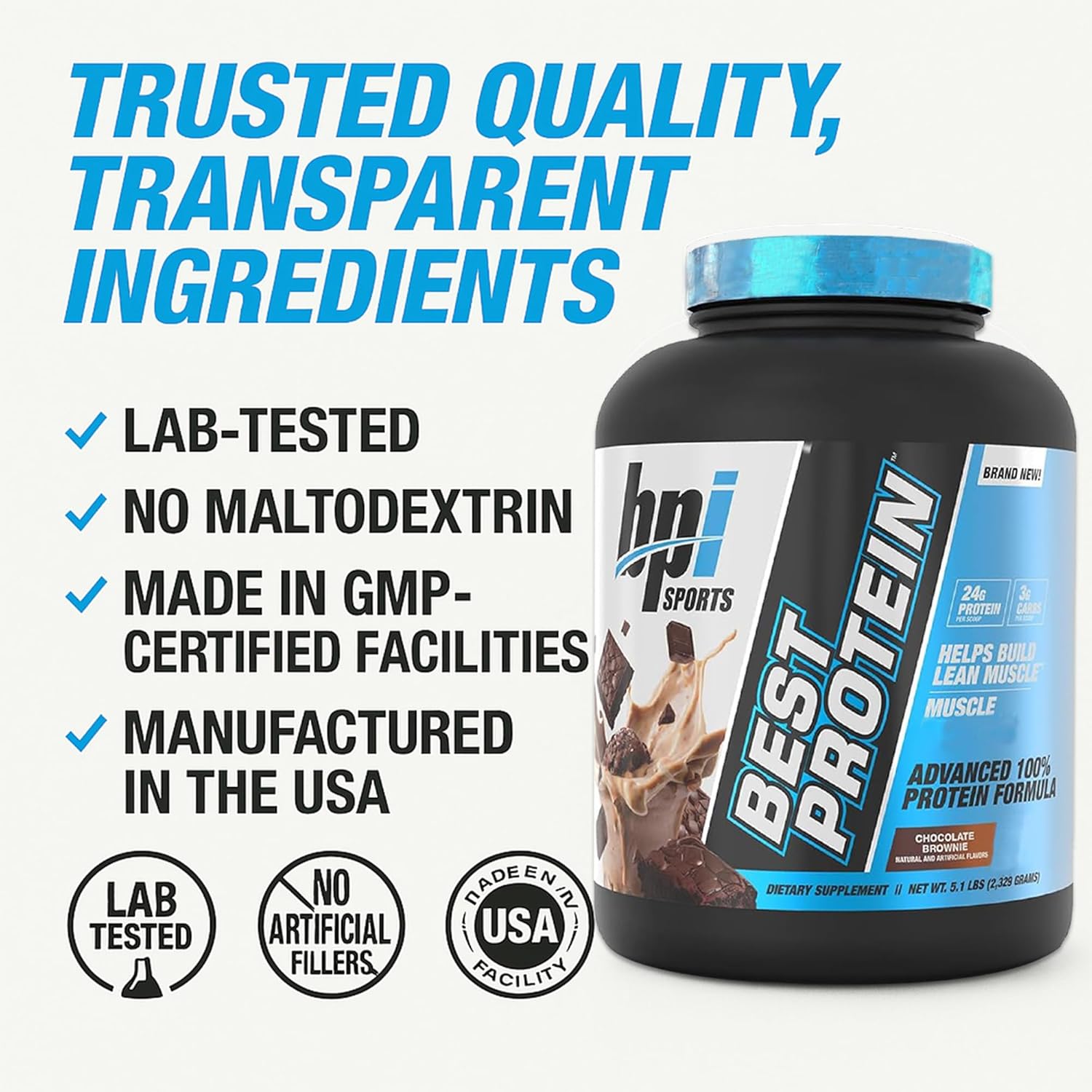 BPI Sports Best Protein – 100% Whey Protein Powder – Muscle Growth, Recovery, Meal Replacement – No Fillers, Gluten Free – Best Protein Powder for Men & Women | Chocolate Brownie – 5.1 Pounds