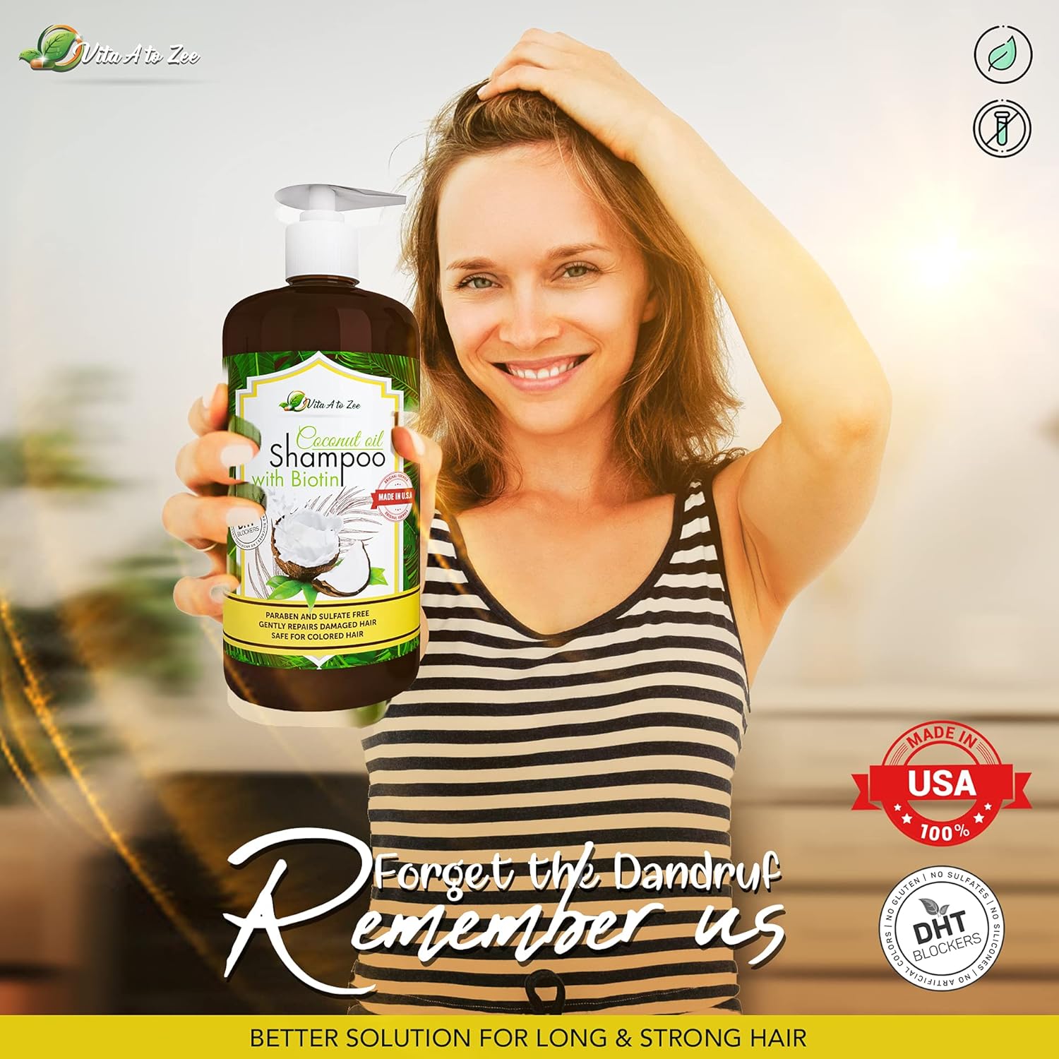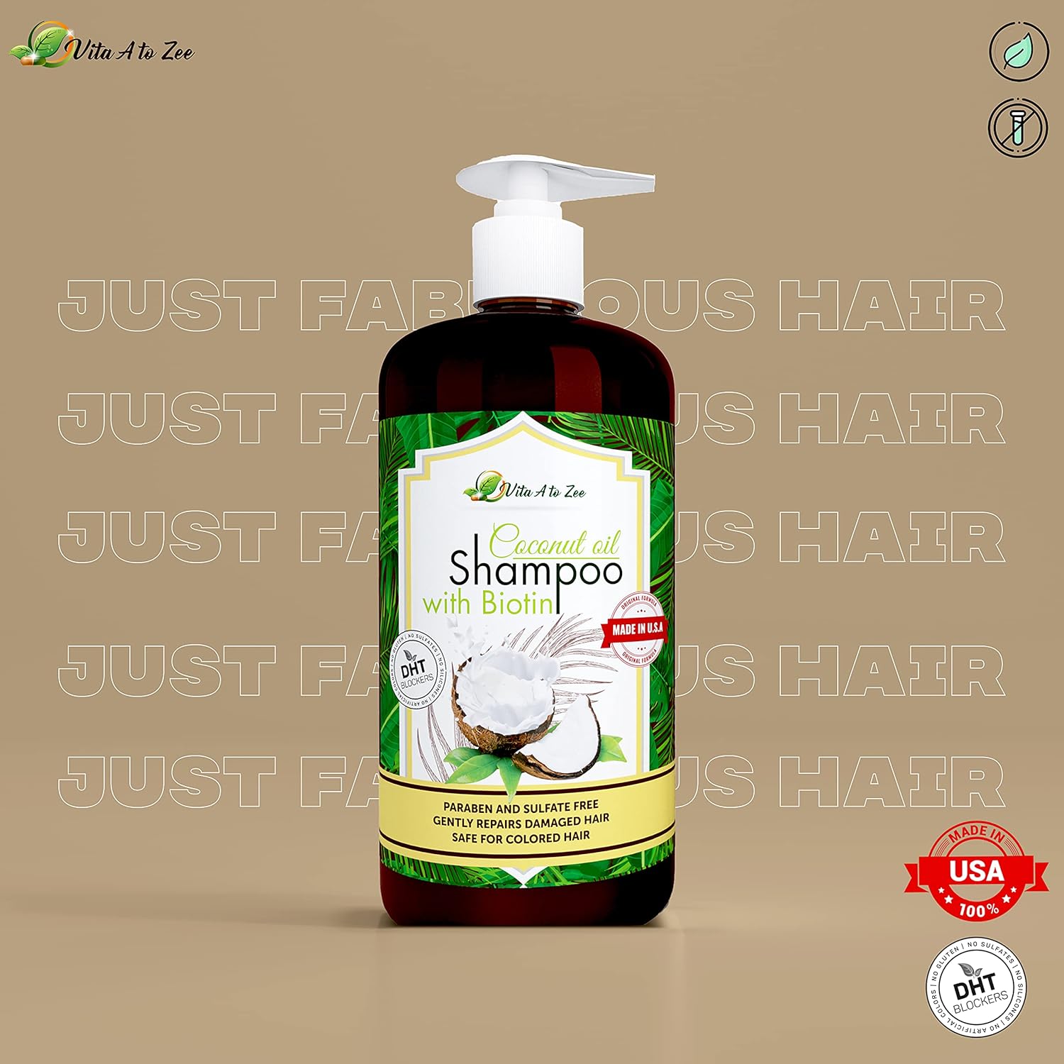 Coconut Oil Shampoo with Biotin, Aloe Vera (16.9 Fl Oz) – Hair Regrowth Shampoo for Dry, Frizzy or Coarse Hair – Moisturizing, Hydrating, Flyaway Taming & Anti Frizz Hair & Scalp Care