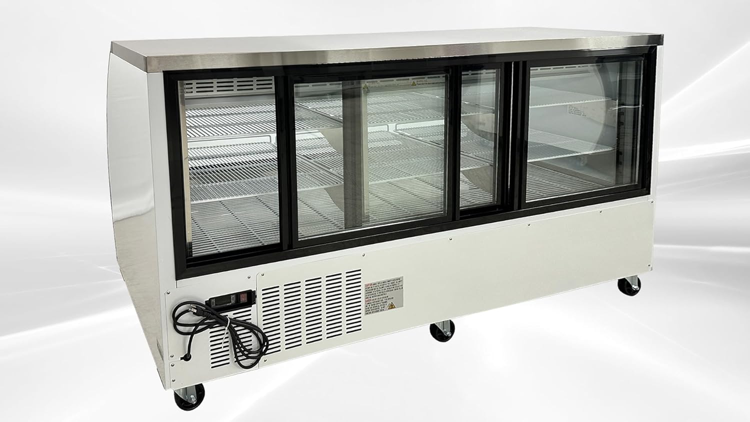 Versatile and User-Friendly: 2 sliding doors for easy access, Curved glass front, Gravity coil refrigeration provides a high humidity environment for exceptional preservation of meats and deli products; Simple installation with no plumbing required Note: our warranty does not cover all equipment used in food trucks, trailers, boats, residential addresses, islands, or built-in decorations.