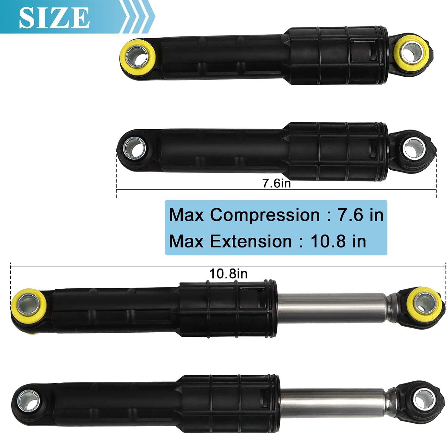 WASHER SHOCK ABSORBER SET:Washer shock absorbers set Includes 2 x DC66-00470A Washer( Front) Shock Absorber,2 x DC66-00470B Washer( Rear) Shock Absorber, in total 4 Washer Shock Absorber .Replacements front and rear shock absorber set used for SAM-SUNG washers