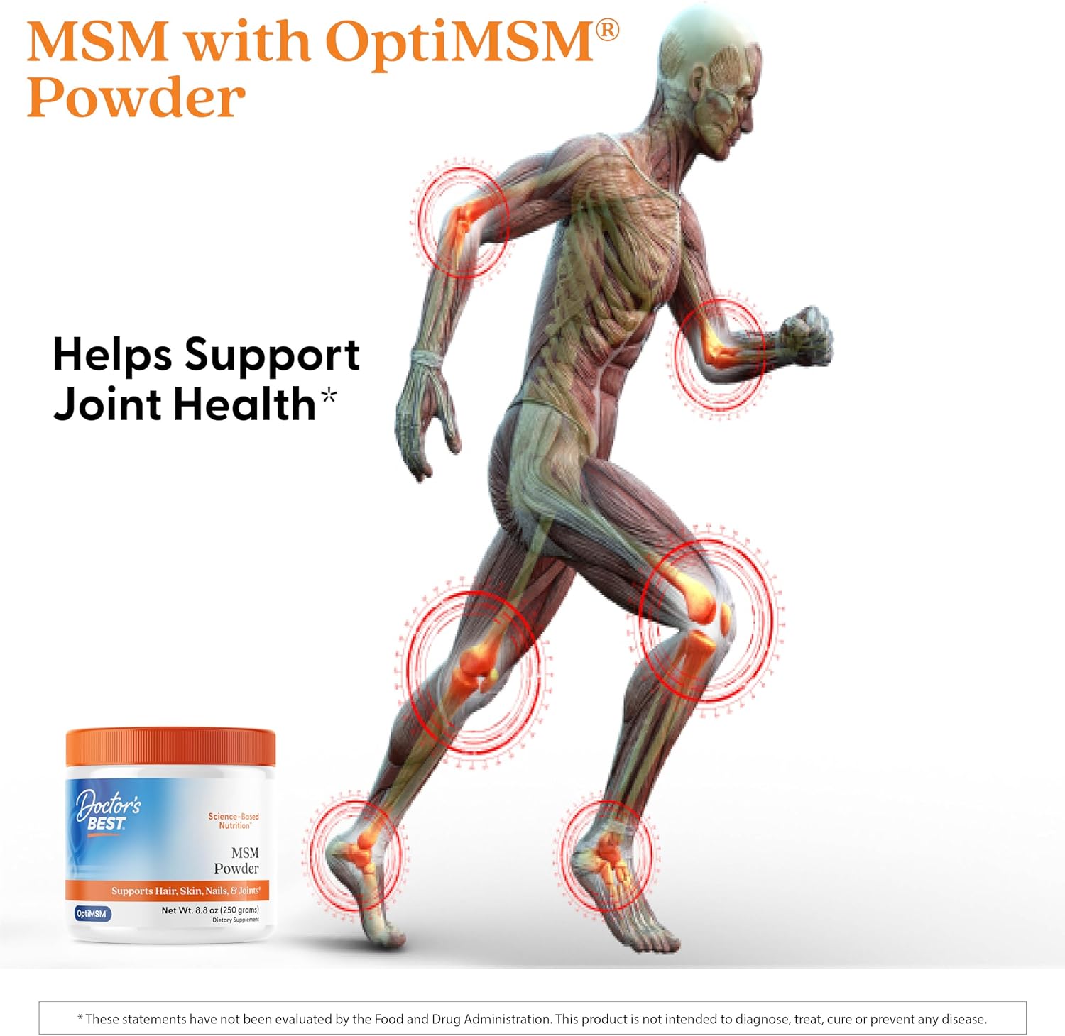Doctors Best MSM Powder, Supports Hair, Skin, Nails, & Joints, Non-GMO, Gluten Free, Soy Free, Vegan Net Wt. 8.8 oz (250 Grams)