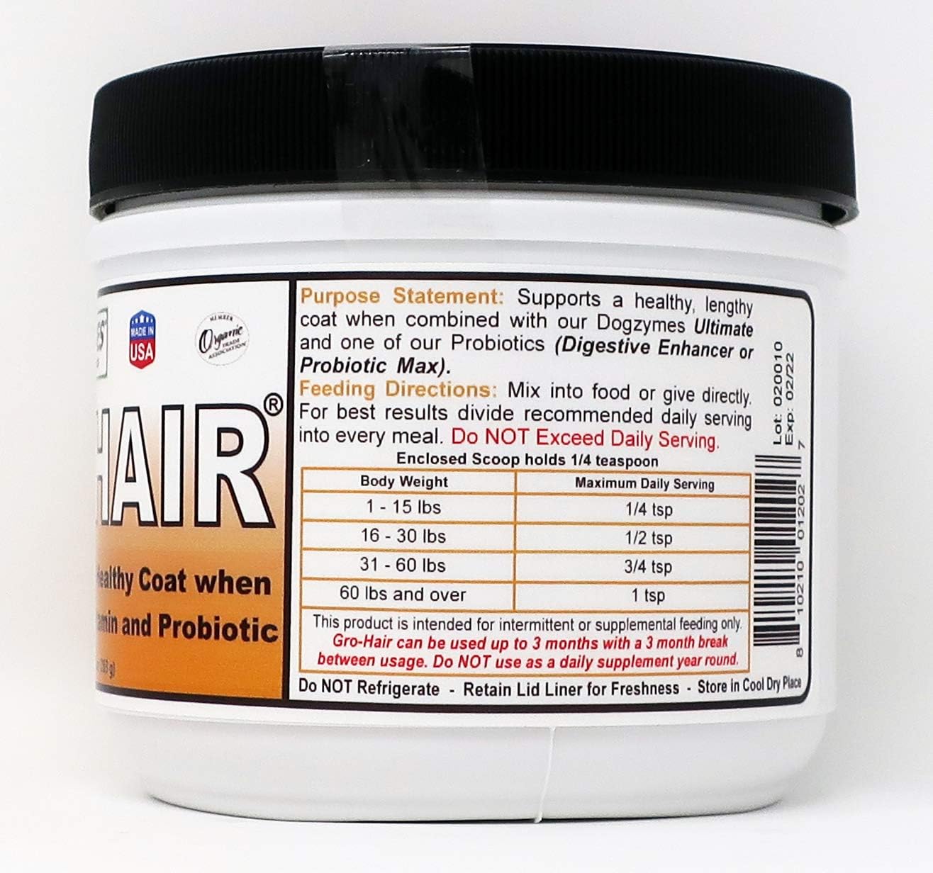 Dogzymes GRO-Hair for Length of Coat or Feathering, Fast Coat Growth or When sparse Coat and/or Bald Spots Need to Fill in.