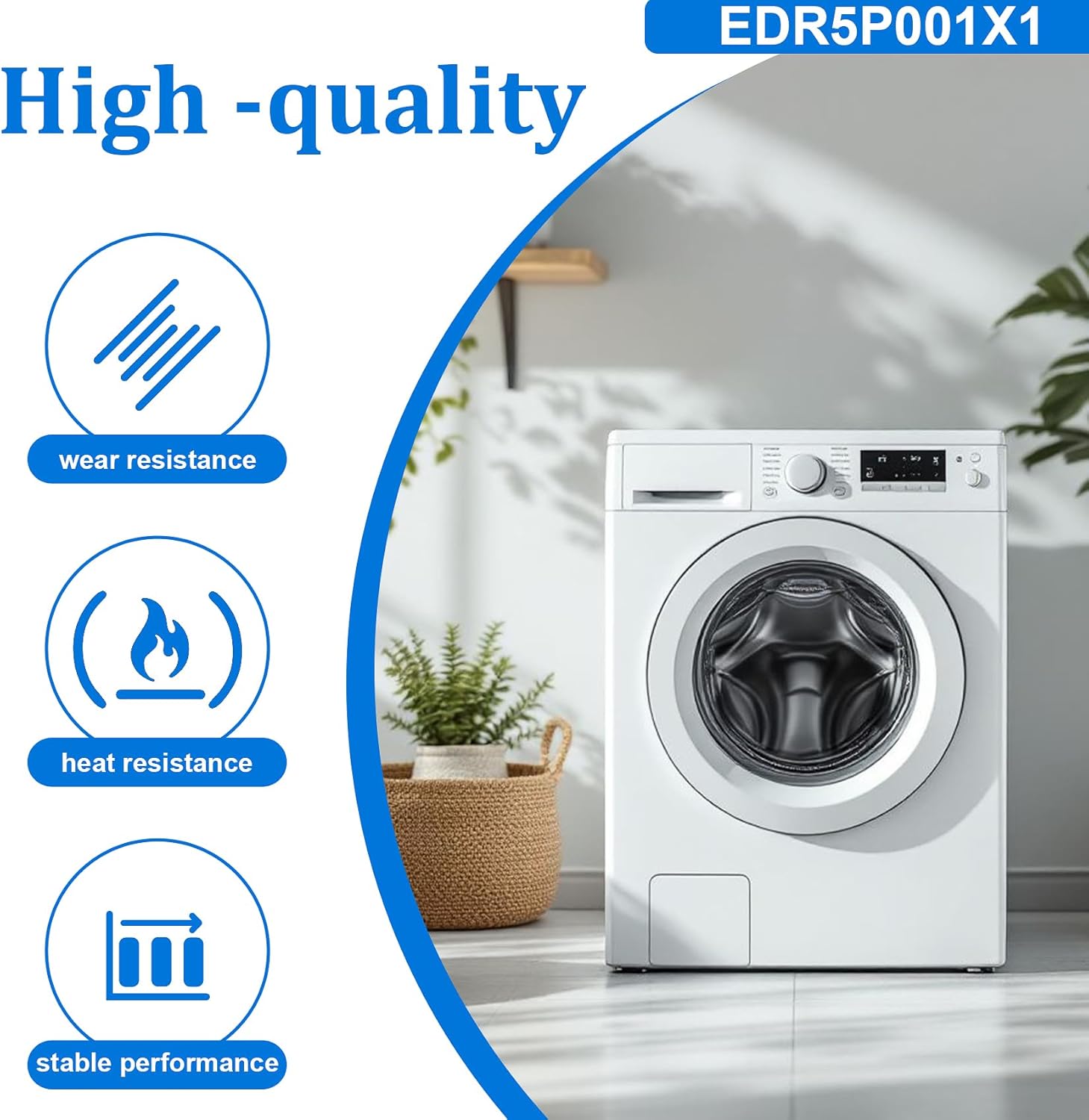 High -quality: EDR5P001X1 washing machine transmission belt is made of high -quality rubber and polyurethane. It has good wear resistance, tear resistance and heat resistance. It can be widely used in various types of household washing machines, with stable and reliable performance