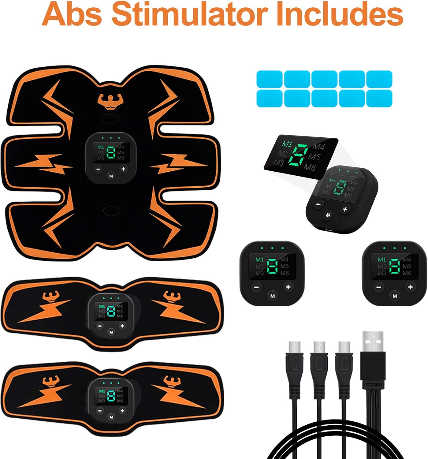 Electronic Muscle Stimulator, Abs Stimulator, EMS Abdominal Muscle Stimulator,Muscle Trainer,USB Rechargeable Gear for Abdomen/Arm/Leg, Ab Stimulator Equipment for Men Women,8 pcs Free Gel Pads