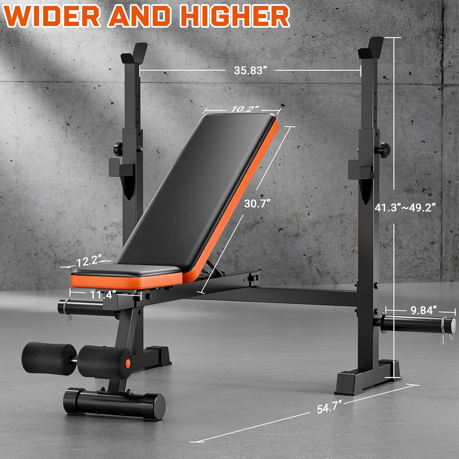 【Specialized for Home Gyms】Designed for home gyms, this adjustable weight bench adopts a widened main frame to fit people of various shoulder widths. The soft leather memory foam seat and backrest pad provide a comfortable exercise environment and protect your body