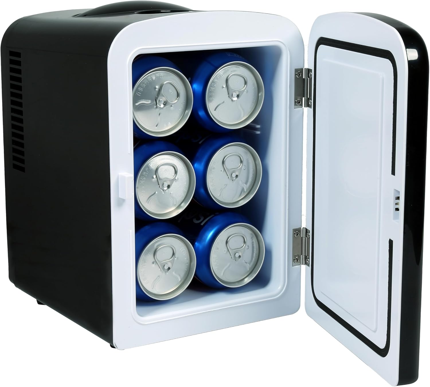 Frigidaire Mini Personal Fridge Cooler, 4L Capacity Chills Six 12 oz Cans, Portable & Compact, AC Plug & 12V Car Charger – Black