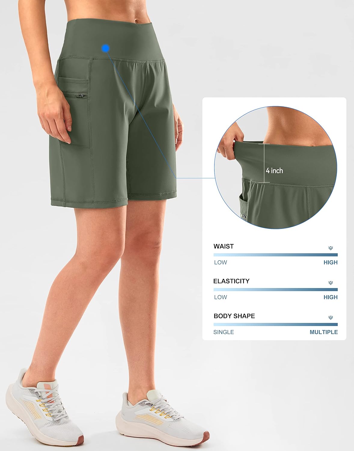 G Gradual Women’s High Waisted 9″ Bermuda Shorts with Zipper Pockets Athletic Workout Long Shorts for Women Knee Length