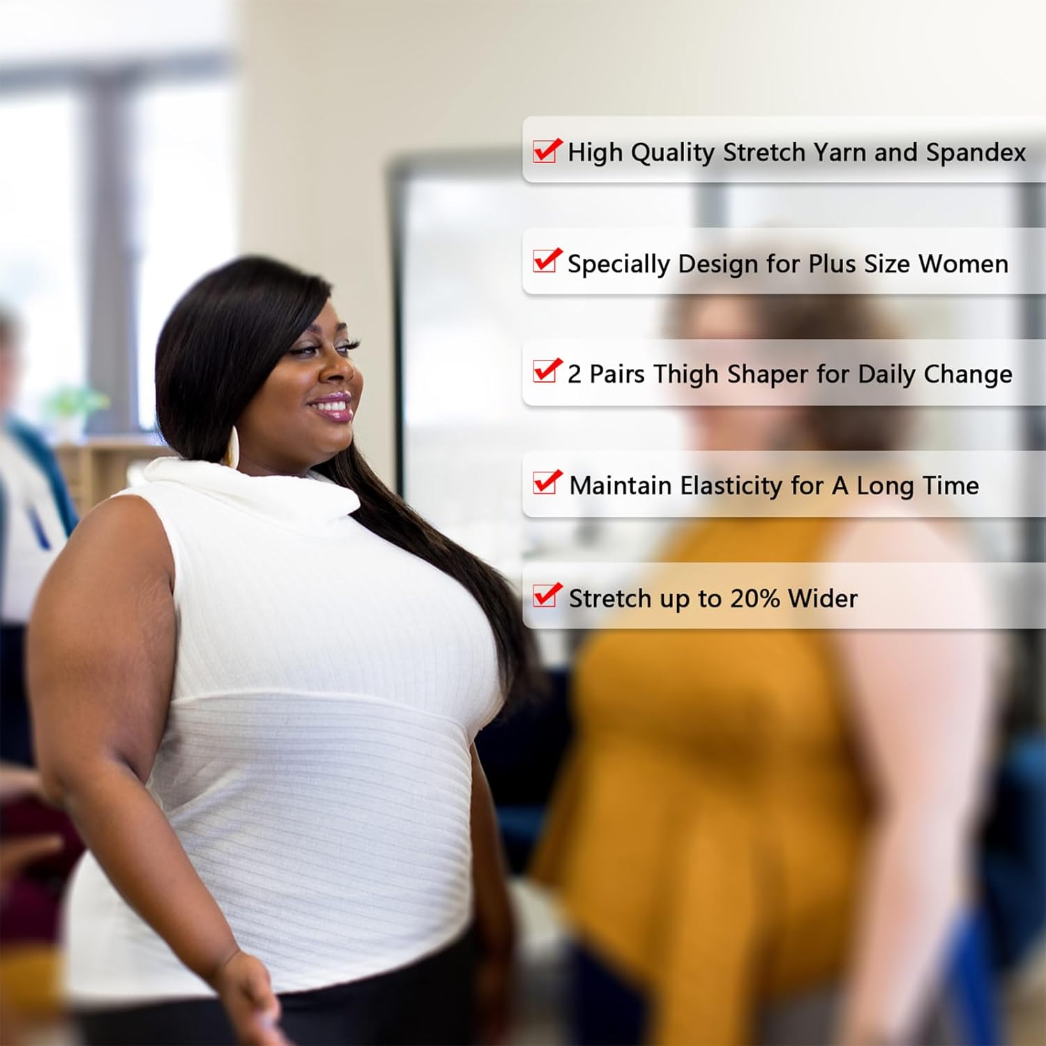 Wear them at any occasion: whether you are at home, at work, attending a party or anywhere else, you can use slimming thigh wraps because you can wear them underneath clothing; The plus size thigh wraps will help you have a slimmer appearance, which makes you more confident