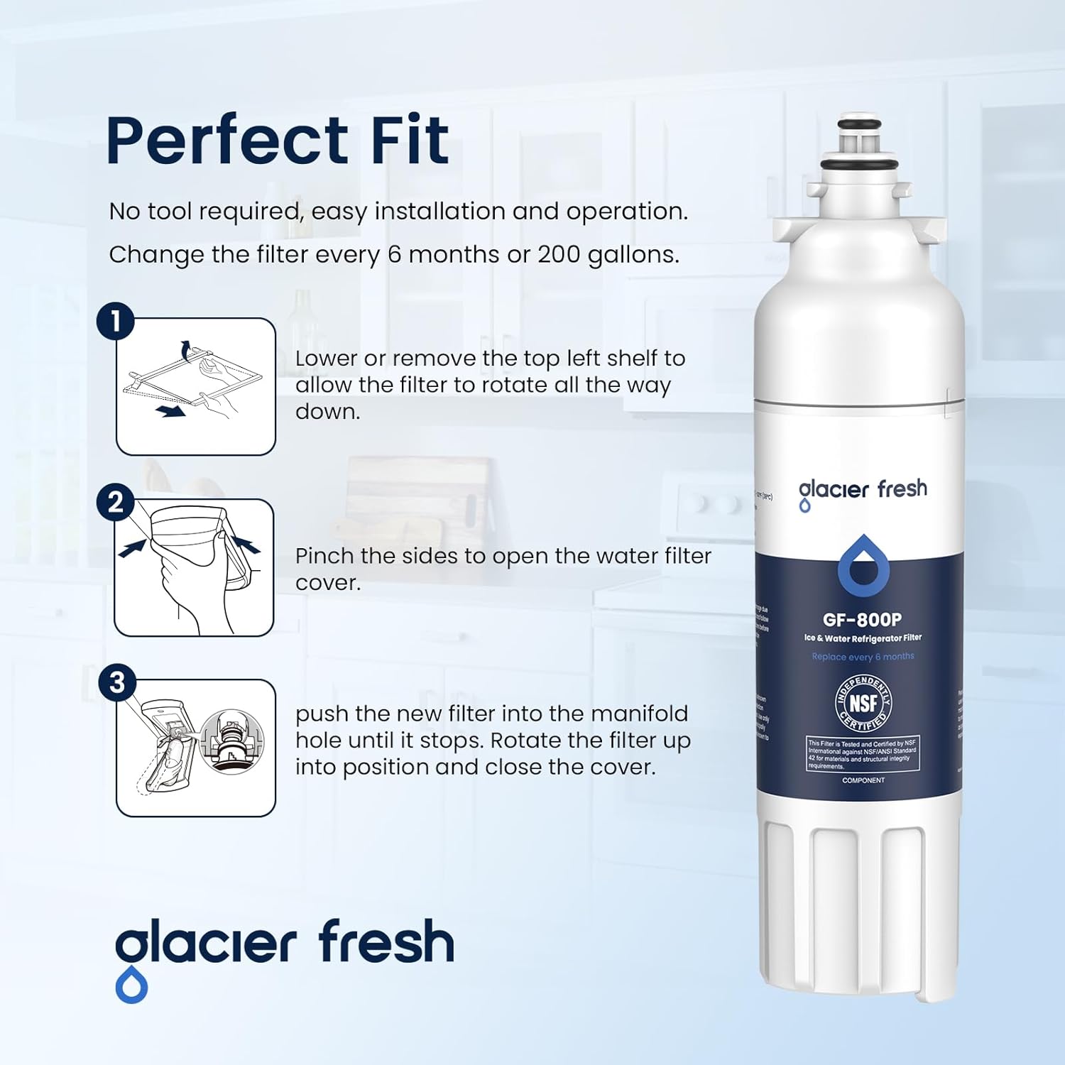 Be the first to review “GLACIER FRESH Replacement for LT800P Refrigerator Water Filter and Air Filter, Compatible with LG LT800P, LT800PC, LSXS26326S, Kenmore 46-9490, and LG LT120F, ADQ73214404 Air filter Combo 4 Pack”