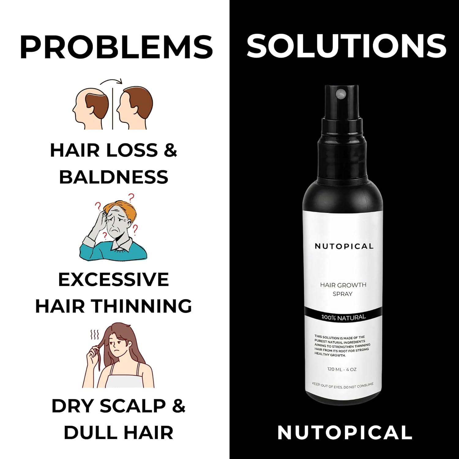 Quick And Simple To Use: The hair growth spray is easy to carry and convenient to use allowing you to nourish and support your scalp and hair follicles anywhere you go. Simply spray directly on the scalp and gently massage to help support brittle, thinning hair and protect it against split ends and hair loss