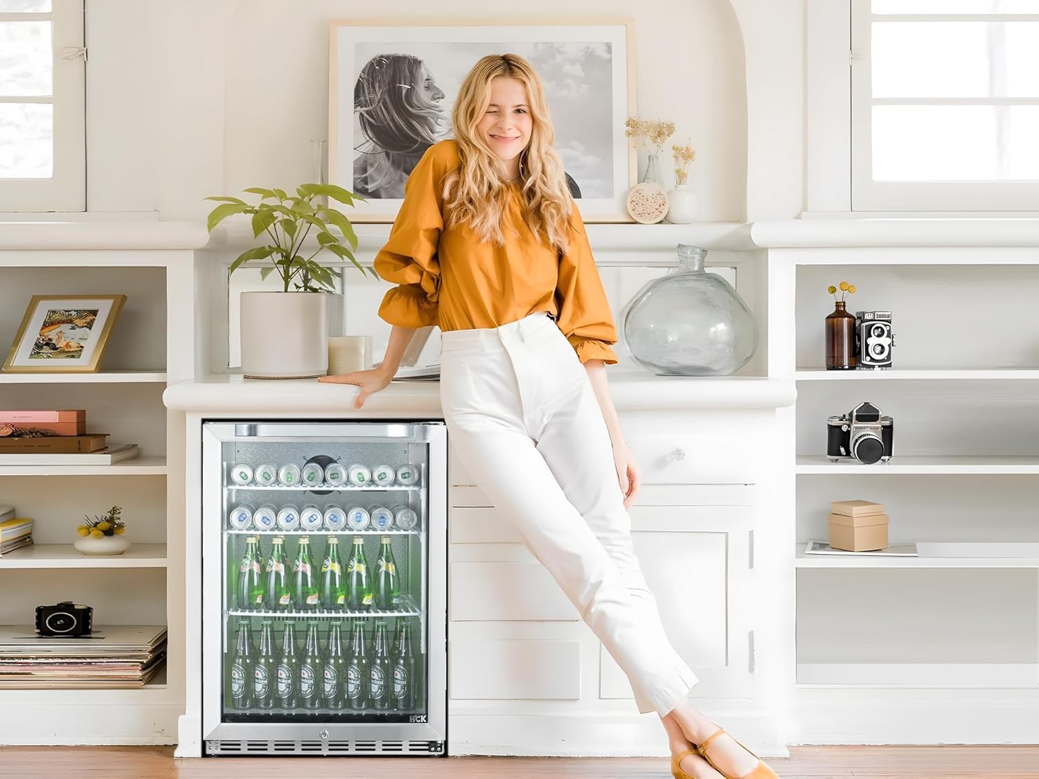 HCK 24 Inch Beverage Refrigerator, 180 Can Under Counter Fridge with Glass Door and Stainless Steel Body, Built-in or Freestanding, Beverage Cooler for Soda, Beer, Wine – Kitchen, Bar or Office