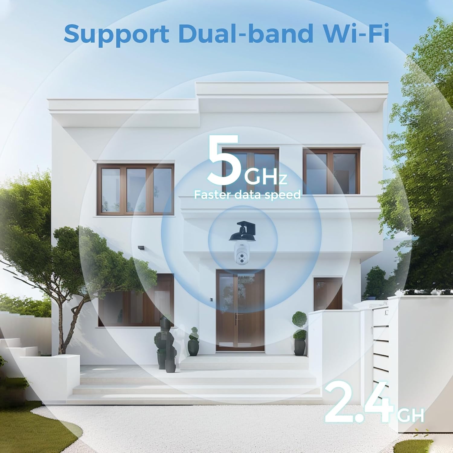 【5GHz & 2.4GHz Dual Band WiFi】 Our light bulb security camera supports 5GHz and 2.4GHz dual band Wi-Fi connection. The 5GHz band has higher transmission rates and less interference than the 2.4GHz band, while the 2.4GHz band has wider coverage and better penetration. This not only provides a more stable and faster network connection but also increases coverage and signal strength to ensure stable and efficient video surveillance services.