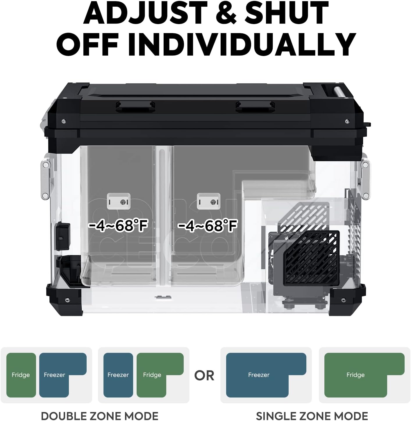 [Flexible Dual Zone Design] The APL55 add removable divider design that allows automatic switching between single and dual zone mode by removing the partition, providing 2 separate zones for refrigeration and freezing with 2 independent digital controller.