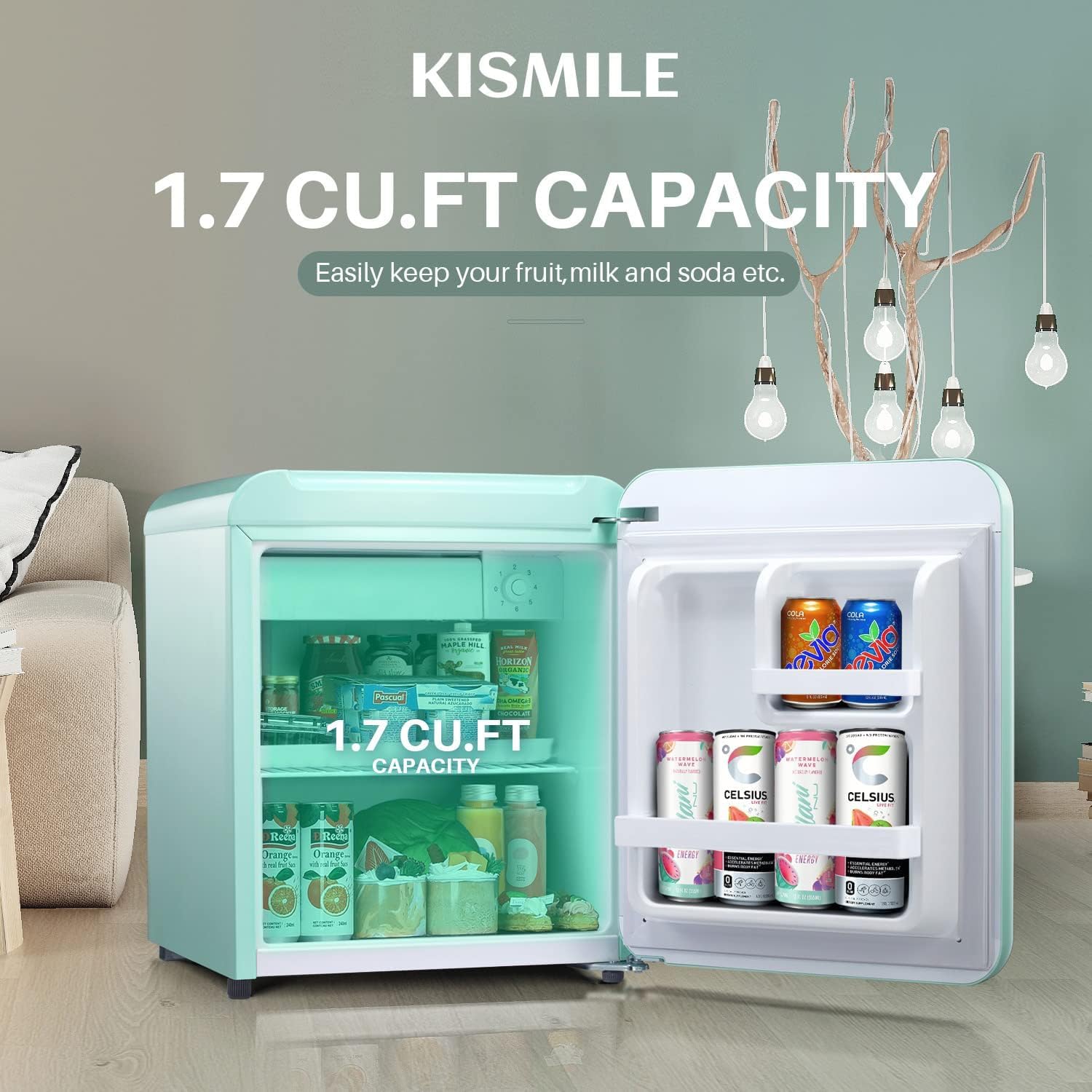 Be the first to review “Kismile Retro Mini Fridge with Freezer, Rated 1.7 cu. ft, Small Refrigerator with Adjustable Removable Glass Shelves, Mechanical Control, for Office, Dorm, Bedroom (Green)”