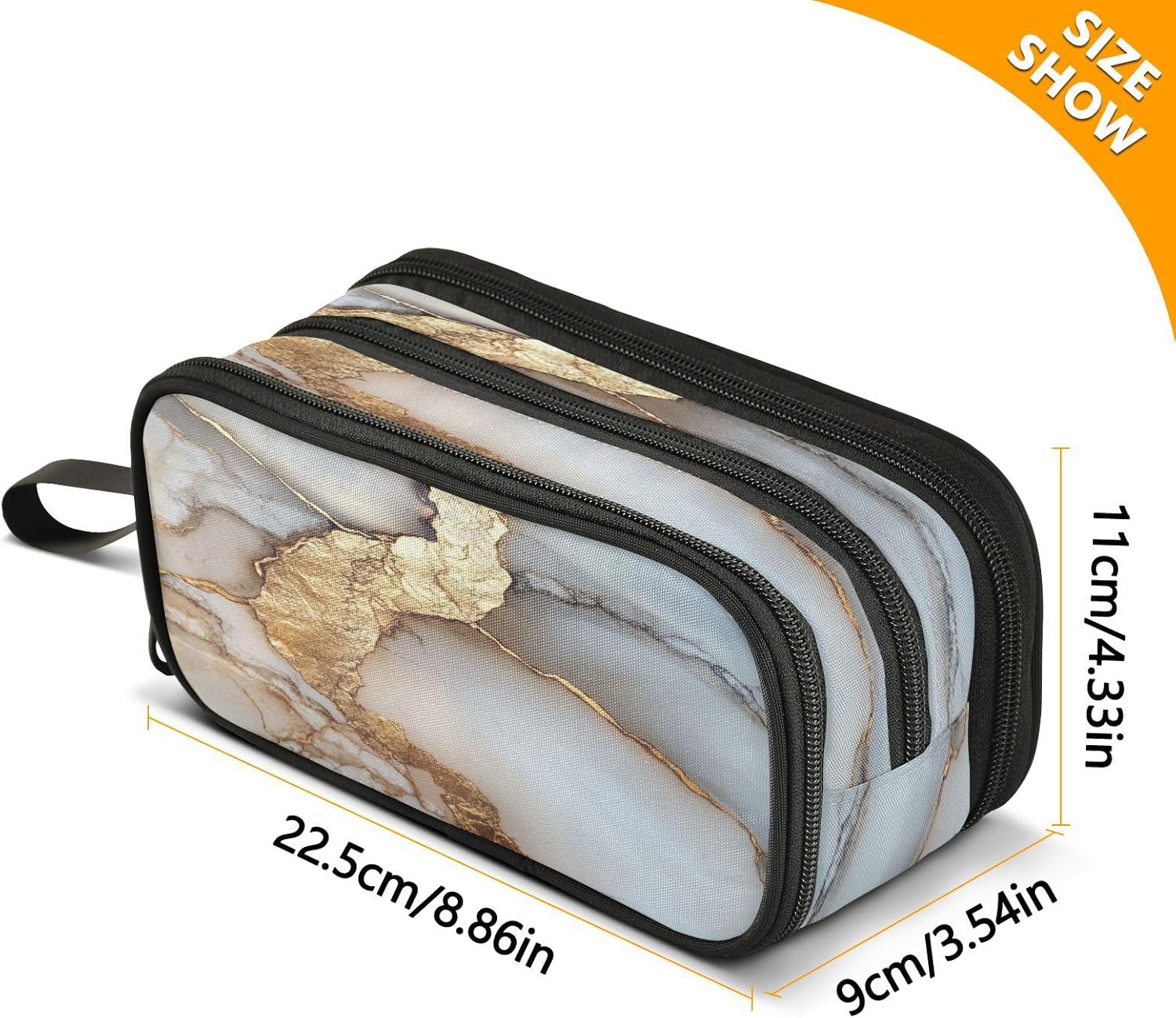 KLL Large Capacity Pencil Case Teen Cool Pencil Cases Cosmetics Lightweight Marble White Neutral