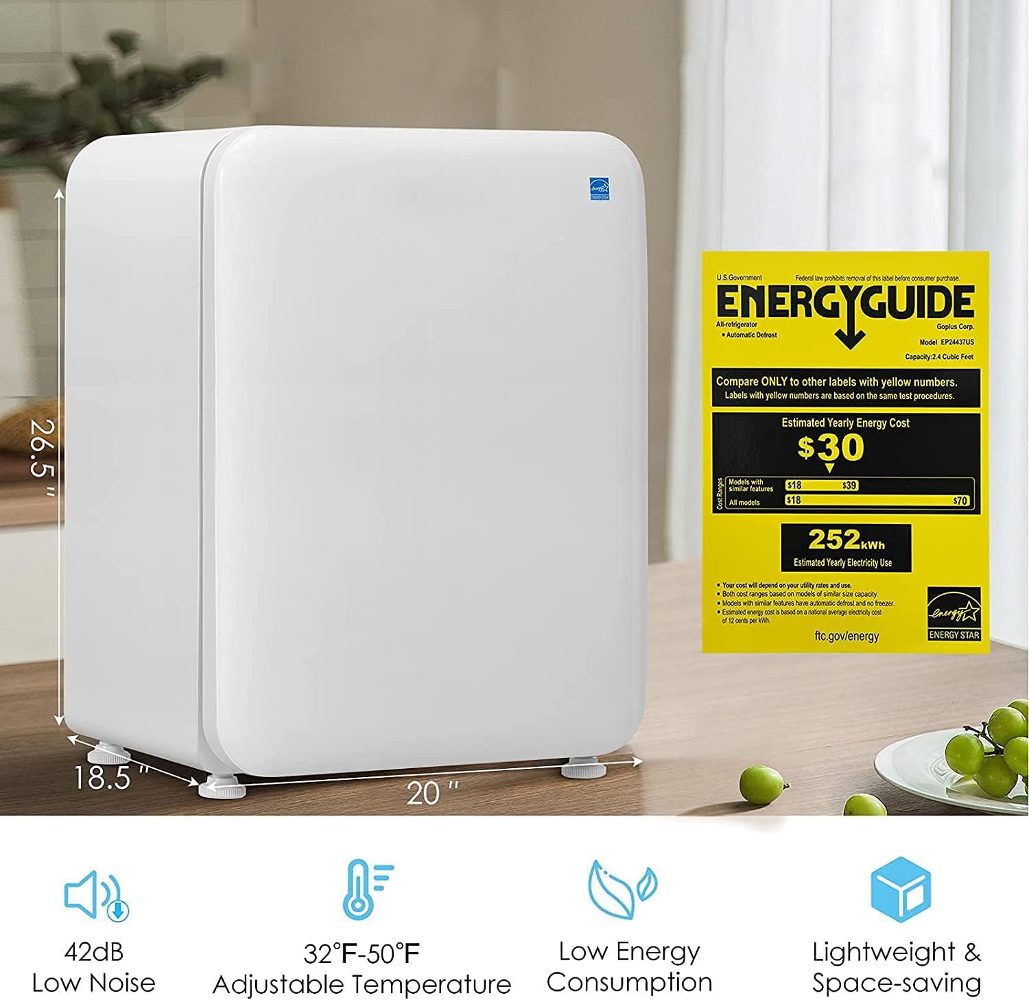 【Perfect Size】With a perfect size of 20″ x 18.5″ x 26.5″ (L x W x H), this 2.4 cubic feet refrigerator is ideal for small apartments, bedrooms, living rooms, office or dormitories. Note: This product is not sold in California.