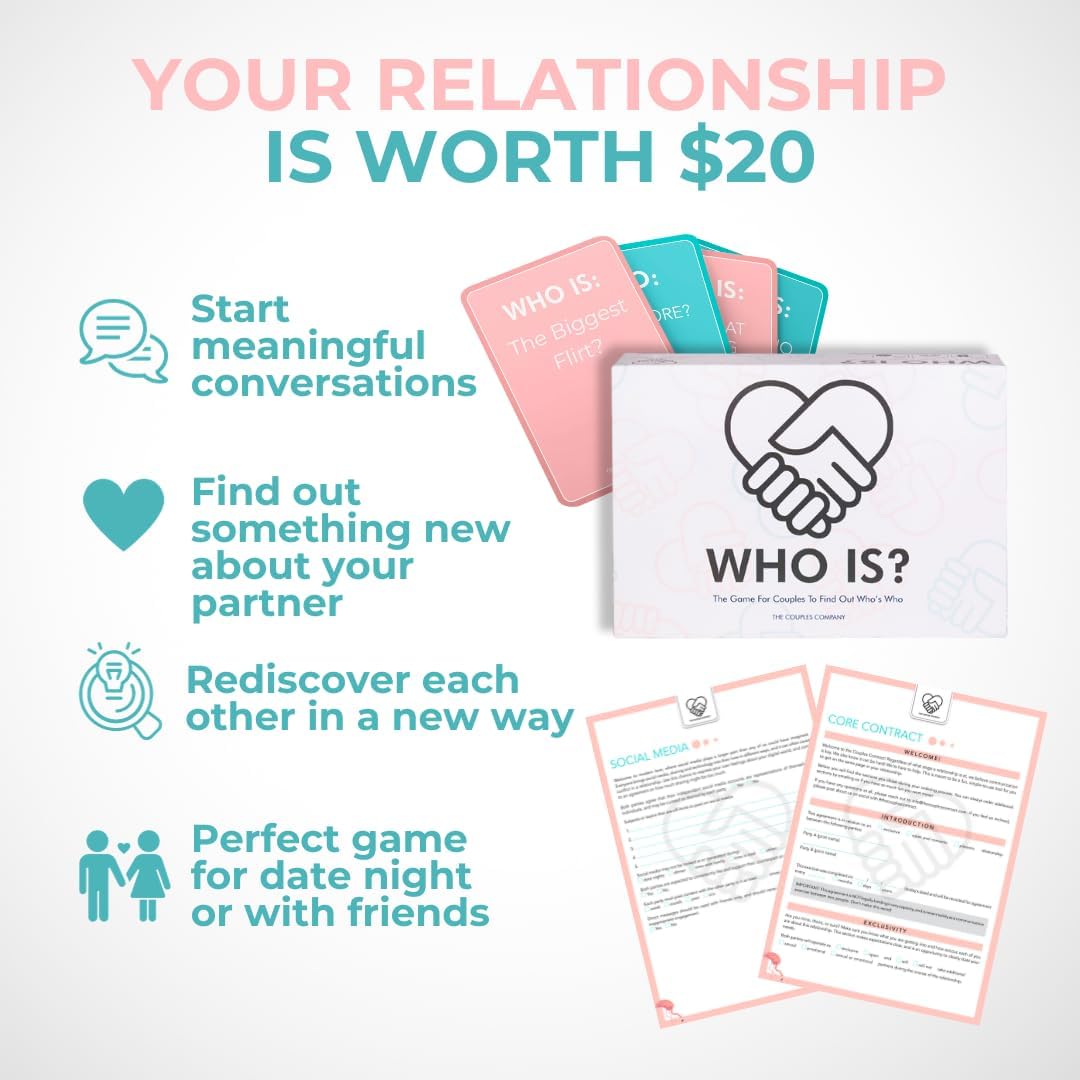 PERFECT GIFT CHOICE – “Who Is?” makes for an ideal and versatile gift, fitting seamlessly into various occasions such as date nights, weddings, engagement parties, Valentine’s Day, and game nights. With 180 Question Cards, 10 Answer Cards, a Couples Contract, and an Instruction Manual, it’s a complete package for unforgettable moments.