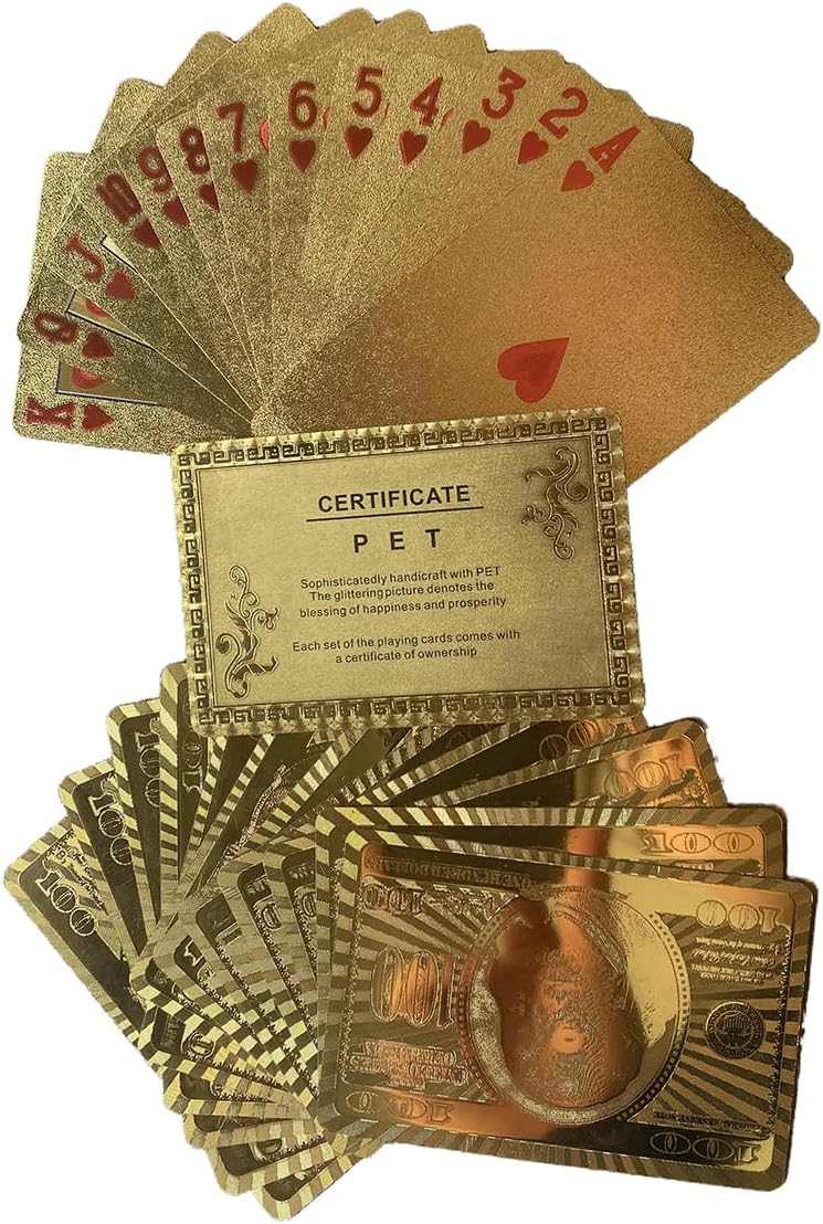 Luxury 24K Gold Foil Poker Playing Cards with Wooden Box Waterproof Cards for Party -Camping – Birthday gift and Card Decks Game