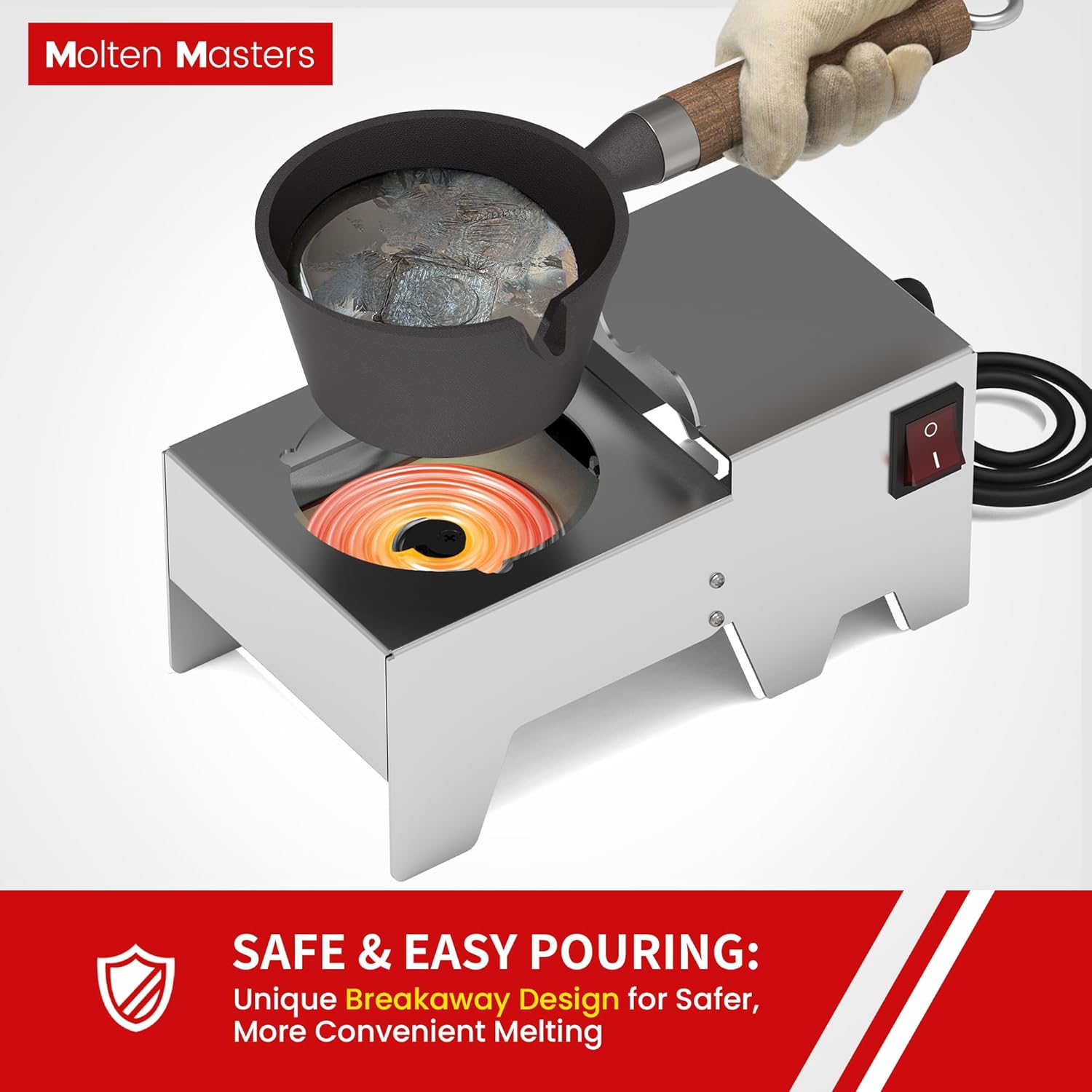 MMasters 5 lb Electric Lead Melting Pot for Quick and Efficient MeltingPot ,Separate with Stainless Steel Base – Great for Fishing Weight and Bullet Molds – Compatible with US Standard Sockets Updated