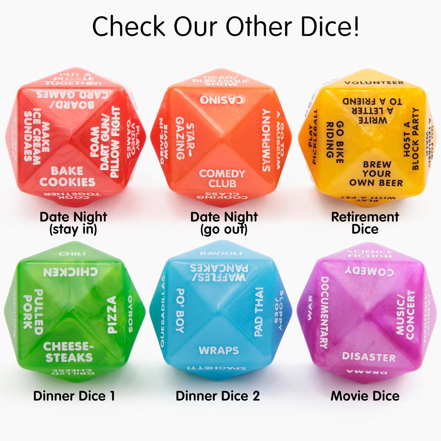 Make movie night decisions effortless and fun with our Movie Decision Dice! With easy-to-read white text features 24 diverse movie genres, from action/adventure and romance to horror and comedy. Measuring 2″x 2″x 2″, it’s perfect for rolling to decide your next film. Add some excitement to your dinner and movie nights, date nights, and couples’ evenings with this must-have dice. It’s also great for deciding on a movie to watch at home or at the theater. It’s an ideal gift for movie enthusiasts, families, couples, and friends who love exploring different film genres. Enhance your movie nights with the Movie Decision Dice and never struggle to pick a film again!