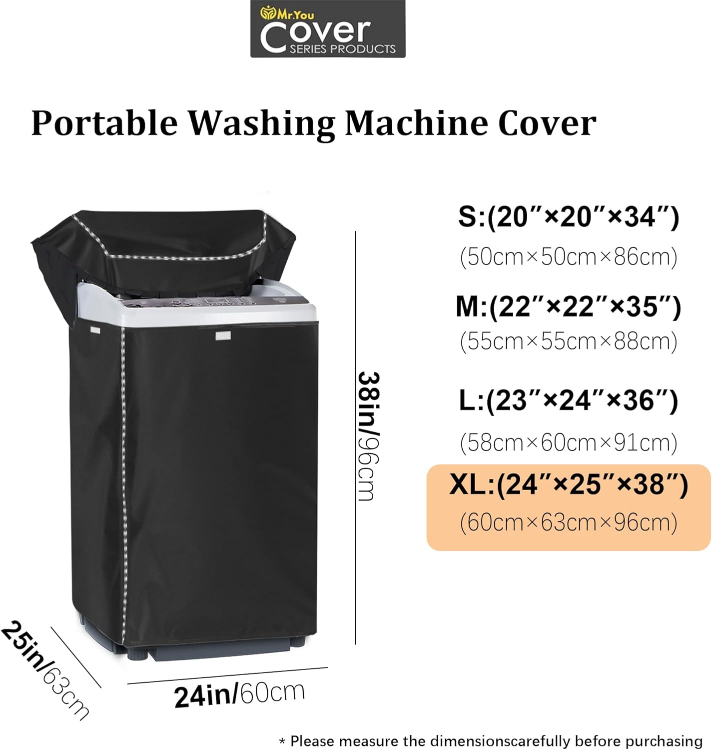 Mr.You Portable Washing Machine Cover,Top Load Washer Dryer Cover,Waterproof Full-Automatic/Wheel Washing Machine Cover(24″ 25″ 38″,Black)
