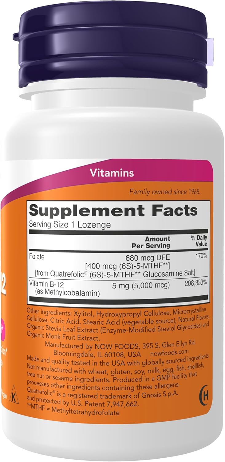 NOW Foods Supplements, Methyl B-12 (Methylcobalamin) 5,000 mcg, Nervous System Health*, 120 Lozenges