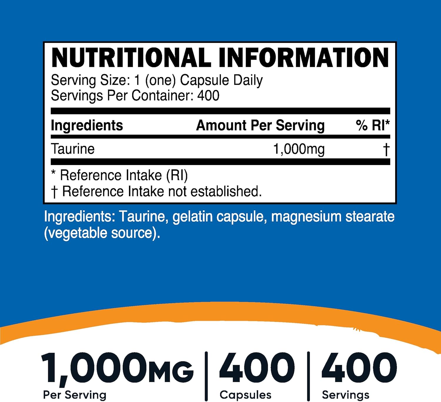 Essential Amino Acid Non-GMO, without Gluten, 3rd Party Tested Made in a GMP Compliant, FDA Registered Facility Double Strength – 1000mg of Tuarine Per Capsule 400 Capsules Per Bottle Essential Amino Acid Non-GMO, Gluten Free, 3rd Party Tested Made in a GMP Compliant, FDA Registered Facility