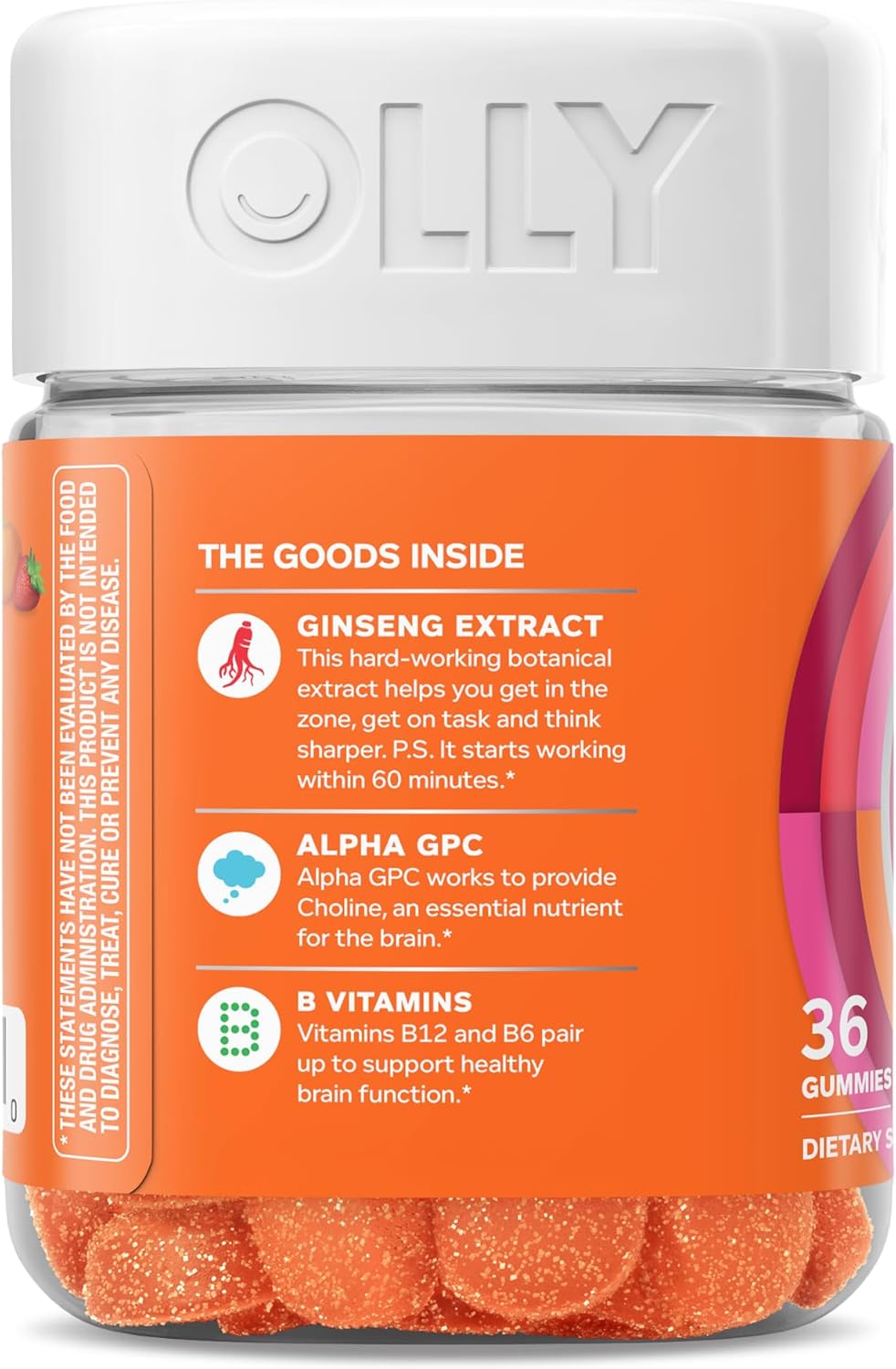 OLLY Laser Focus Gummy, Ginseng, Alpha GPC, B Vitamins, Berry Tangerine Flavor – 36 Count