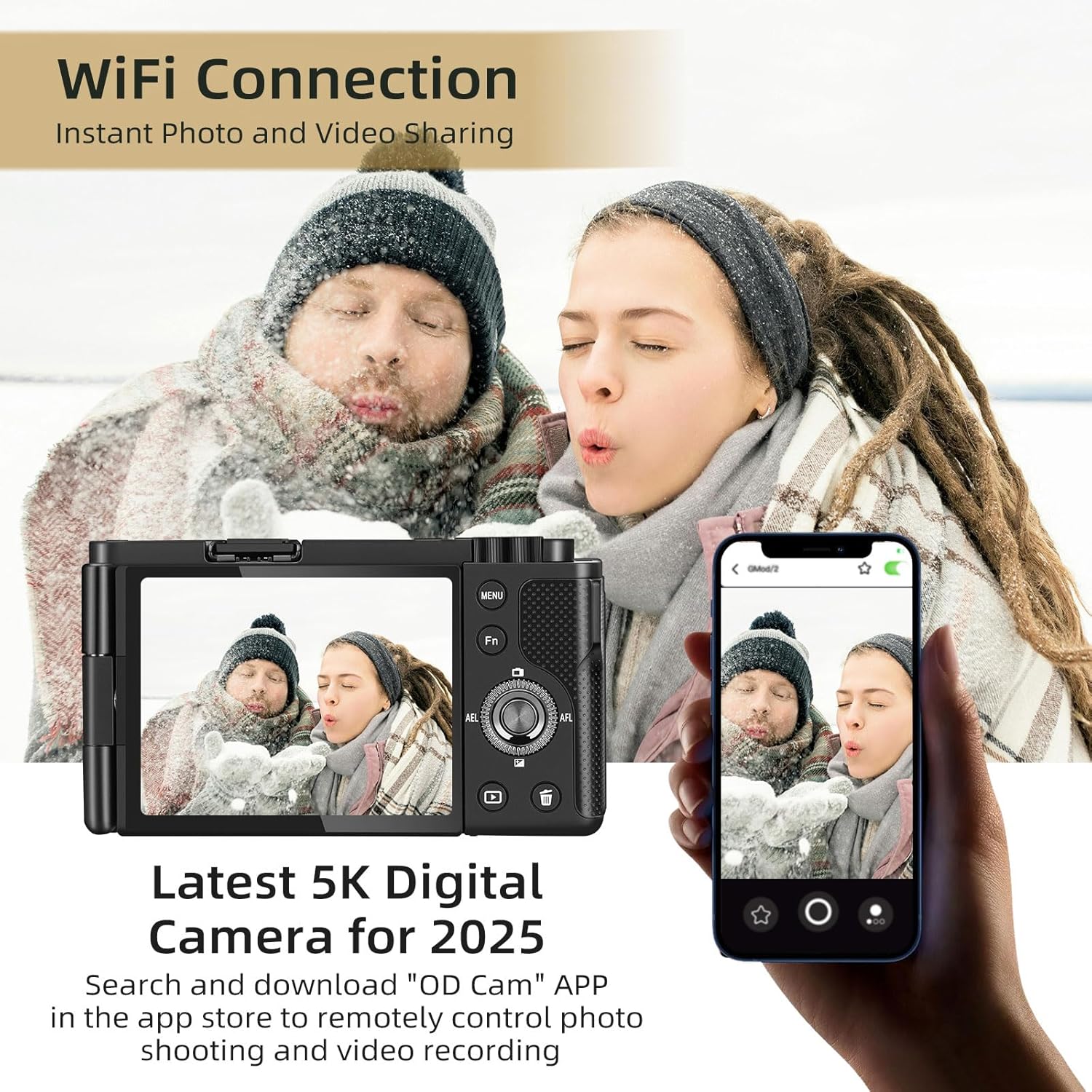 ORDRO Vlogging Camera, Digital Camera for Photography 64 MP, 12X Optical Zoom, Camera Kit: Bundle with 64GB Card, Tripod and Mic for Point and Shoot Camera
