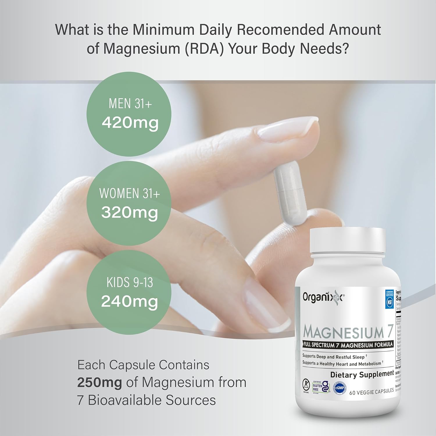 NON GMO, NO LOW-QUALITY ADDITIVES: Magnesium 7 is formulated without magnesium oxide, chloride, hydroxide, sulfate, or stearate. It is 100% gluten free, vegan, non-GMO, and contains no stearates, fillers, additives, artificial flavors, preservatives, colors, yeast, soy, sodium, or starch.