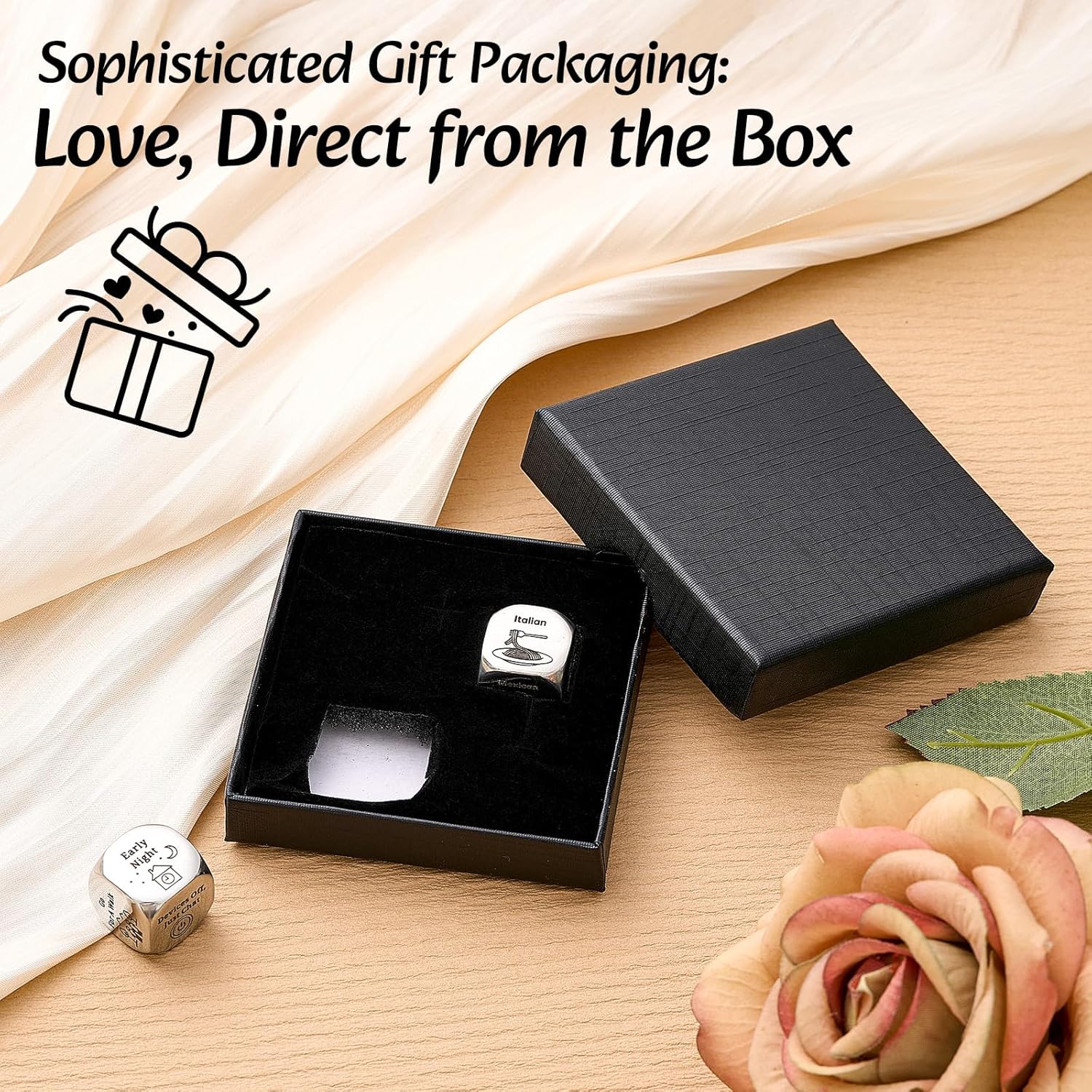 Versatile for Multiple Scenes, Non Stop Romance: from Valentine’s Day, anniversaries, Christmas, to daily dating, these stainless steel dice can be seamlessly integrated into every moment; On Valentine’s Day, roll them to determine a romantic dinner and delightful activities; At Christmas, they inject an extra dose of charm into holiday dates; Creating unforgettable romantic memories becomes a breeze