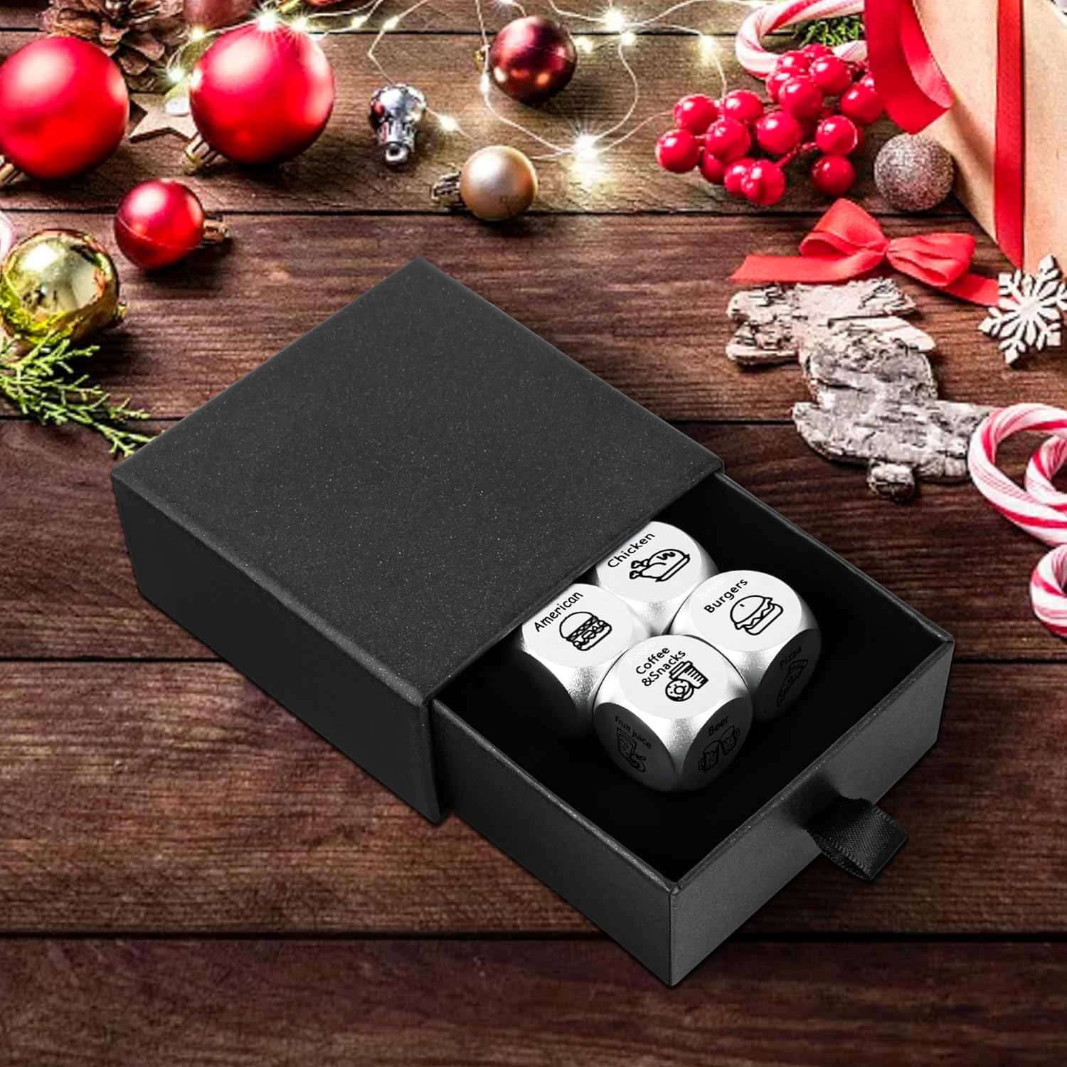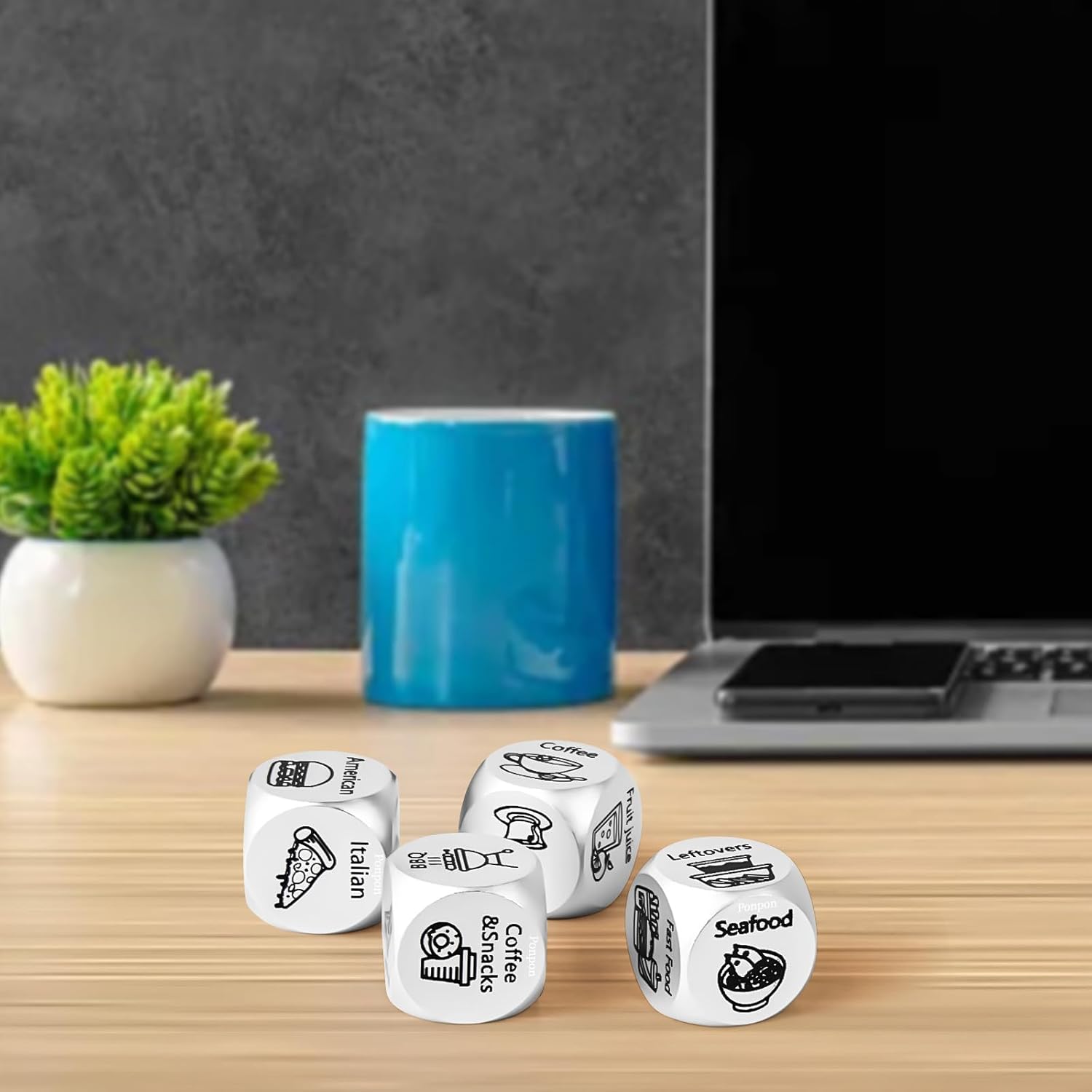 Ponpon 4Pcs Food Decision Dice, Metal Food Dice Game for Couples Girlfriend Boyfriend Wife Husband on Anniversary Valentines Day Birthday Date Night