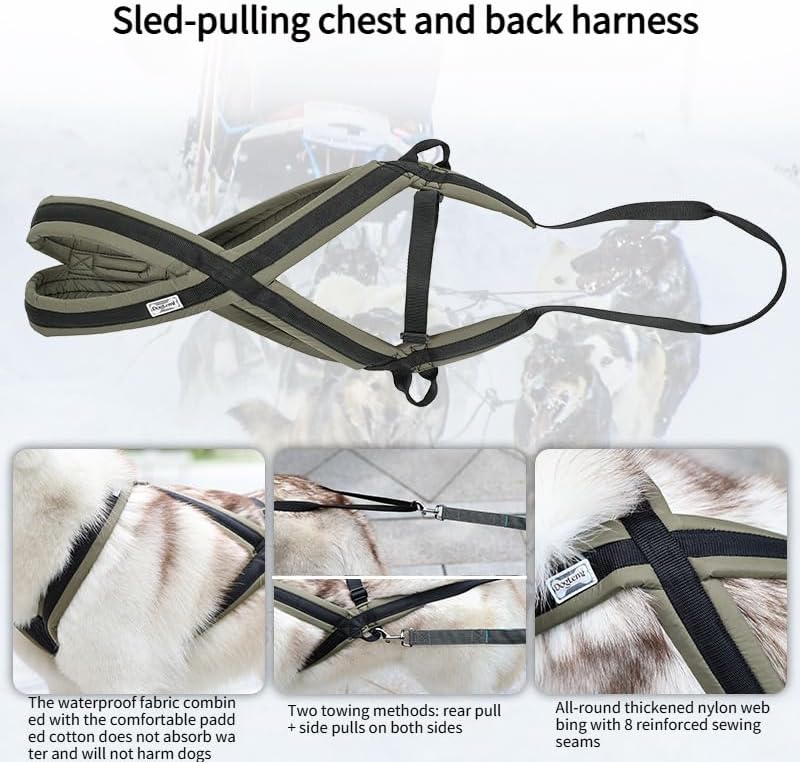Designed for wolf like breeds such as the Siberian Husky, Alaskan Malamute and Greenland dogs, the Sled Dog Harness is perfect for dog sledding, canicross, skijoring and more,mushing Dog Harness for Pitbulls, Huskies, Malamutes, Rottweiler, Newfoundland and other large breed dogs