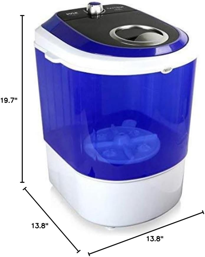 Pyle Compact & Portable Washing Machine Compact & Portable Washing Machine – Mini Laundry Clothes Washer Features: Convenient Top-Loading Washing Machine Hassle-Free Operation: Simply Insert Detergent & Water Does Not Require Any Special Parts or Plumbing Watch it Work: Translucent Tub Container Energy & Water Efficient Design Ideal for Small Laundry Loads Perfect for Underwear, Socks, T-Shirts & Towels Rotary Control Wash Timer Compact & Portable Size Technical Specs: High-Powered Washing Motor: 180 Watt Wash-Load Capacity: 4.5 lbs. Water Tank Capacity: 19Liters Noise Level: 57dB Power: 110V Dimensions: 13.8&;&; x 14.1&;&; x 19.7&;&; The Pyle Compact & Portable Washing Machine – Mini Laundry Clothes Washer – Convenient Top-Loading Washing Machine – Hassle-Free Operation: Simply Insert Detergent & Water – Does Not Require Any Special Parts or Plumbing – Watch it Work: Translucent Tub Container – Energy & Water Efficient Design – Ideal for Small Laundry Loads – Perfect for Underwear, Socks, T-Shirts & Towels – Rotary Control Wash Timer – Compact & Portable Size – Technical Specs: – High-Powered Washing Motor: 180 Watt – Wash-Load Capacity: 4.5 lbs. – Water Tank Capacity: 19Liters – Noise Level: 57dB – Power: 110V – Dimensions: 13.8&;&; x 14.1&;&; x 19.7&;&;.
